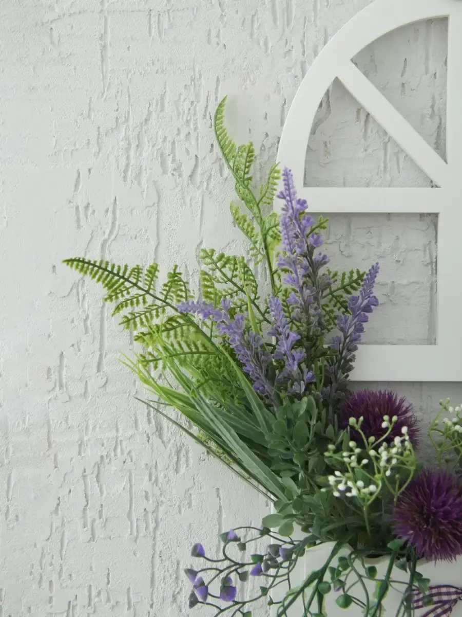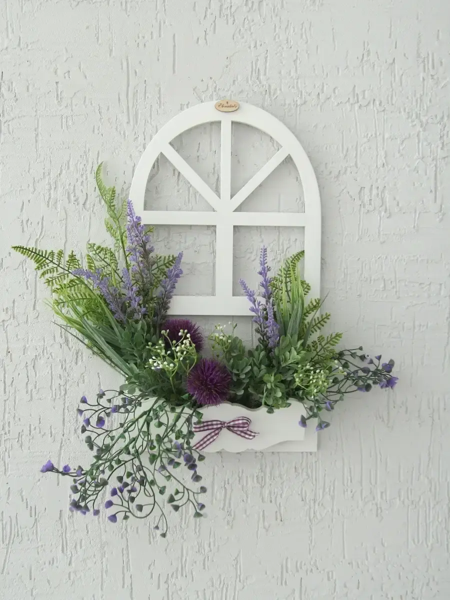 Настенная цветочная композиция в деревянном кашпо в форме окошка с искусственными интерьерными цветами. Выполнена из высококачественных искусственных цветов и растений. Размер окошка 37*21 см. В комплекте шуруп с дюбелем и зубчатый крепеж на раме. Отличное украшение к зеркалу, коллекции картин с цветами или в прихожей, где живым цветам недостаточно света. Панно долго будет радовать и добавлять уюта в дом.