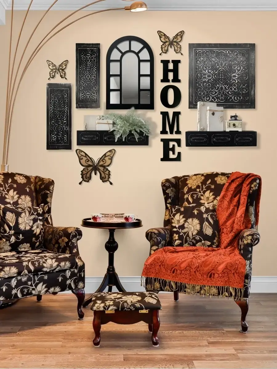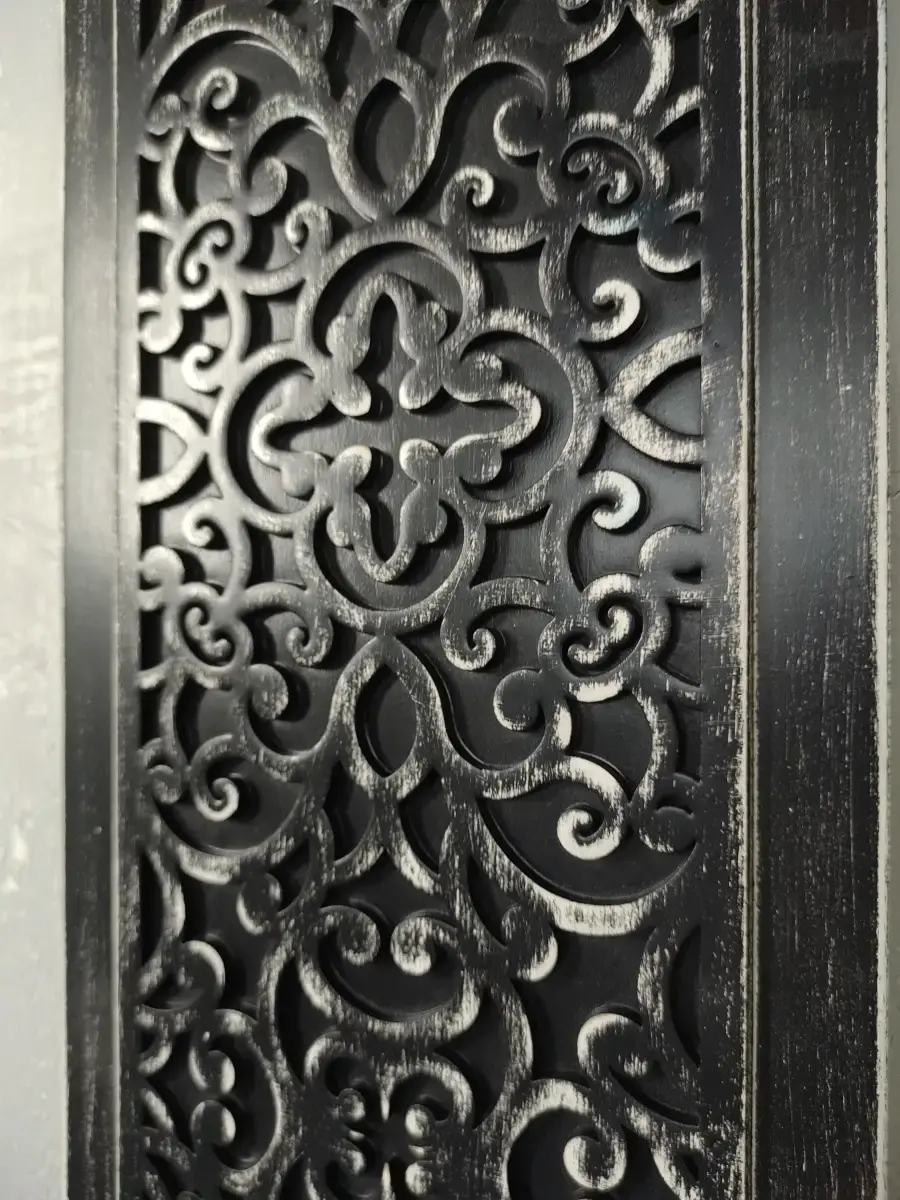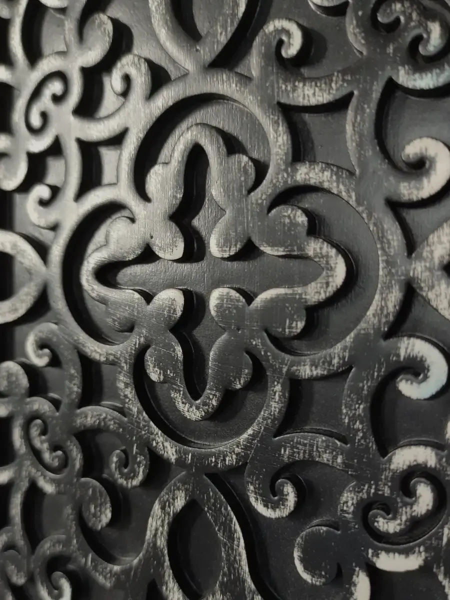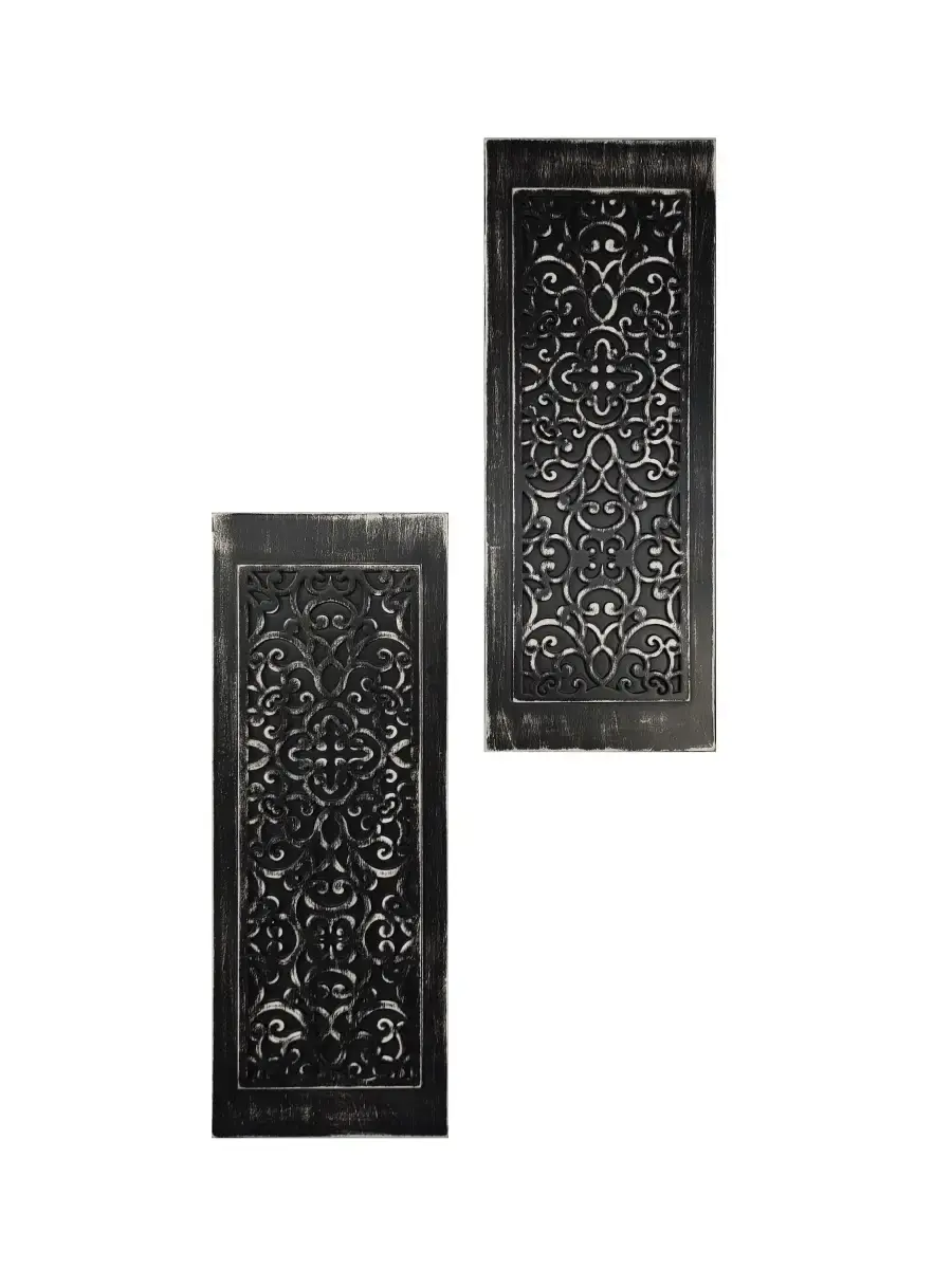 Два настенных деревянных панно с объемным узором. Арт-объект для Вашего интерьера в современном стиле. Размер одного панно 18х48см. Настенный декор выполнен из фанеры, покраска акриловой эмалью на водной основе с эффектом старения. Настенный декор можно комбинировать с квадратным панно, словами и полками в раме. Крепление для стены в комплекте. Крепления для стены в комплекте.