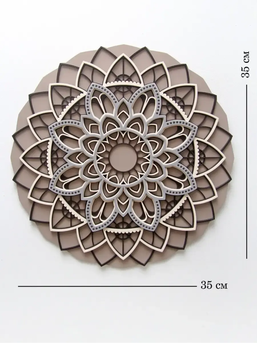Панно резное деревянное многоуровневое "Мандала". Размер 35х35 см. Панно станет центром притяжения любого интерьера. Его хочется рассматривать, погружаться в мягкие цвета и затейливые узоры.