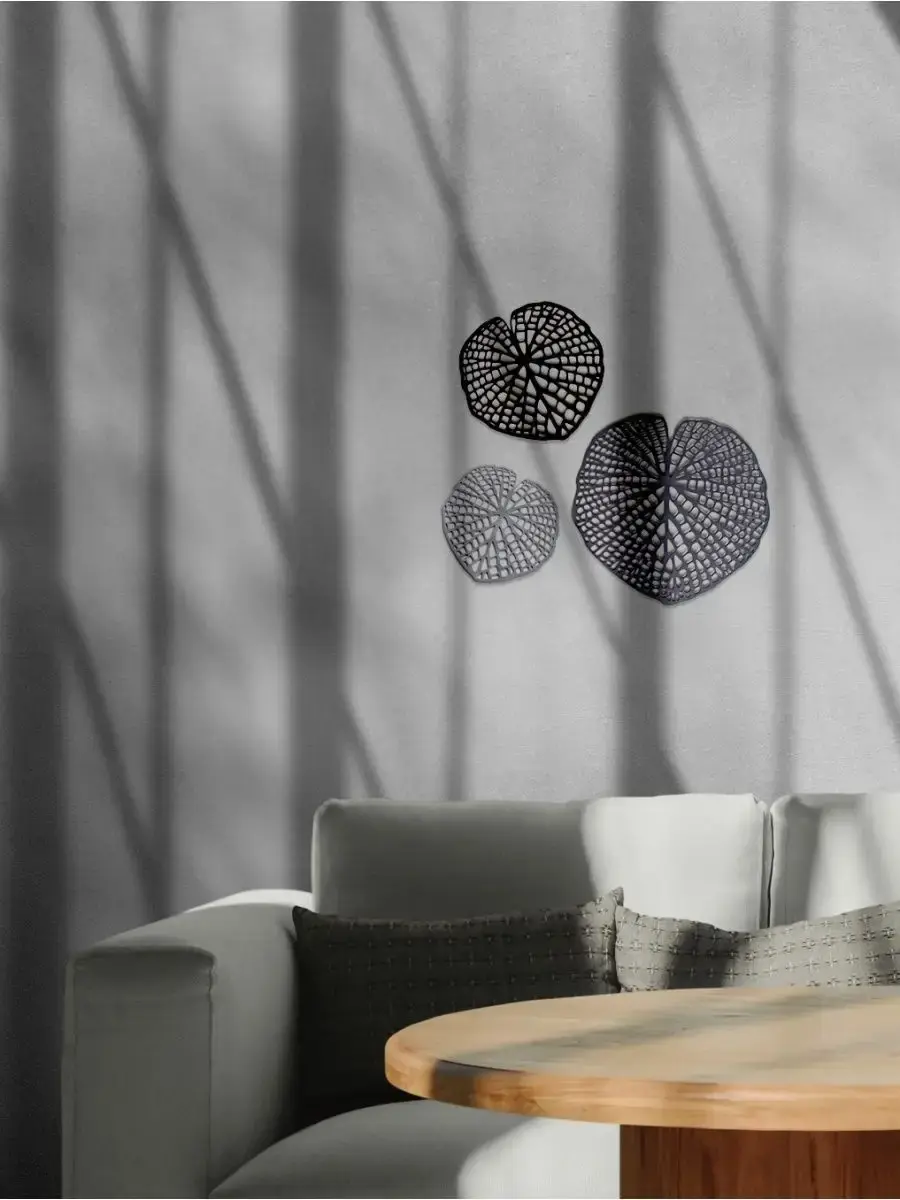 Настенный декор "Листья" из высококачественной березовой фанеры. Окрашены акриловыми эмалями без запаха. В комплекте 3 листа разных оттенков. Размеры: 39х40,5, 29х30.5, 24х25
