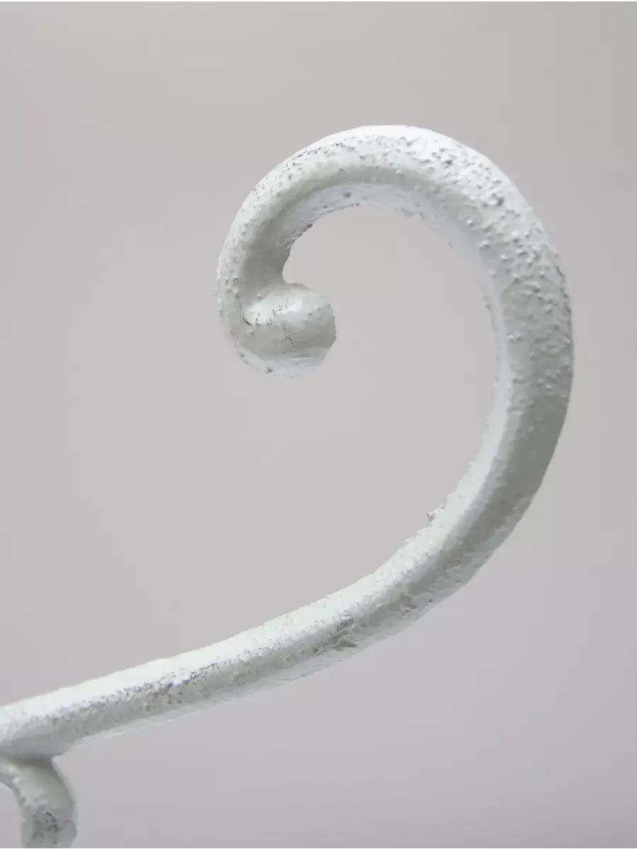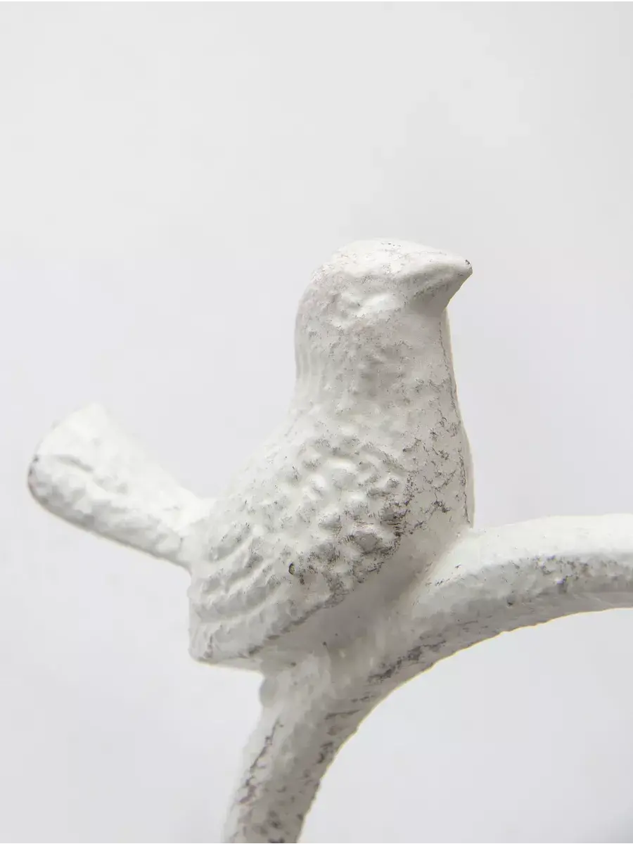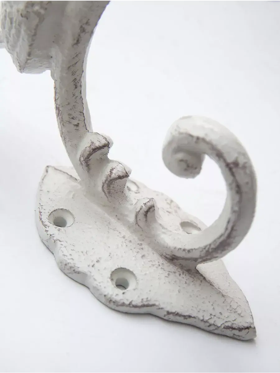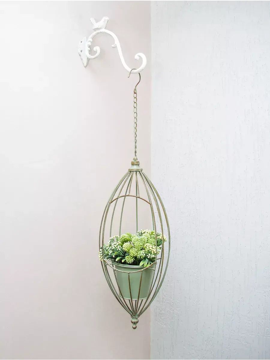 Держатель для кашпо белого цвета с бежевой патиной, украшен птичкой, размер крючка 22*25 (см фото).