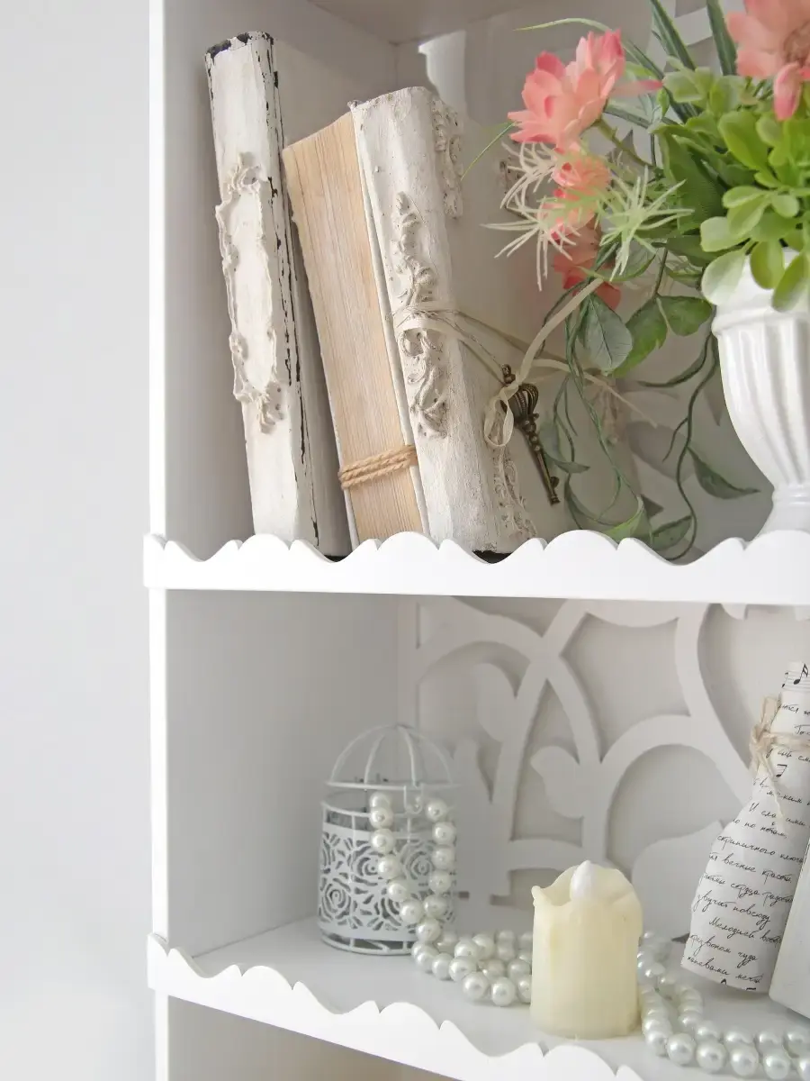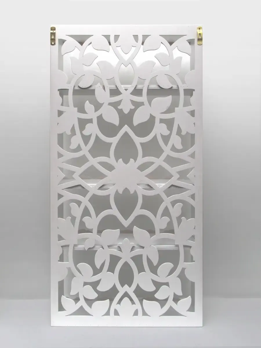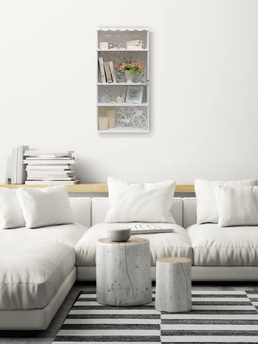 Полка-органайзер с ажурной резной спинкой. Изготовлена из высококачественной шлифованной березовой фанеры. Размер полки 80х40х16 см. Расстояние между полками сверху вниз: 16, 25, 15, 20 см.Ширина полки 15 см.