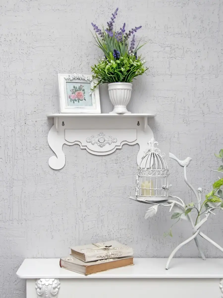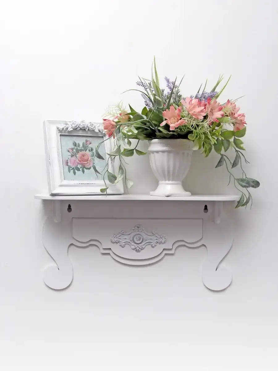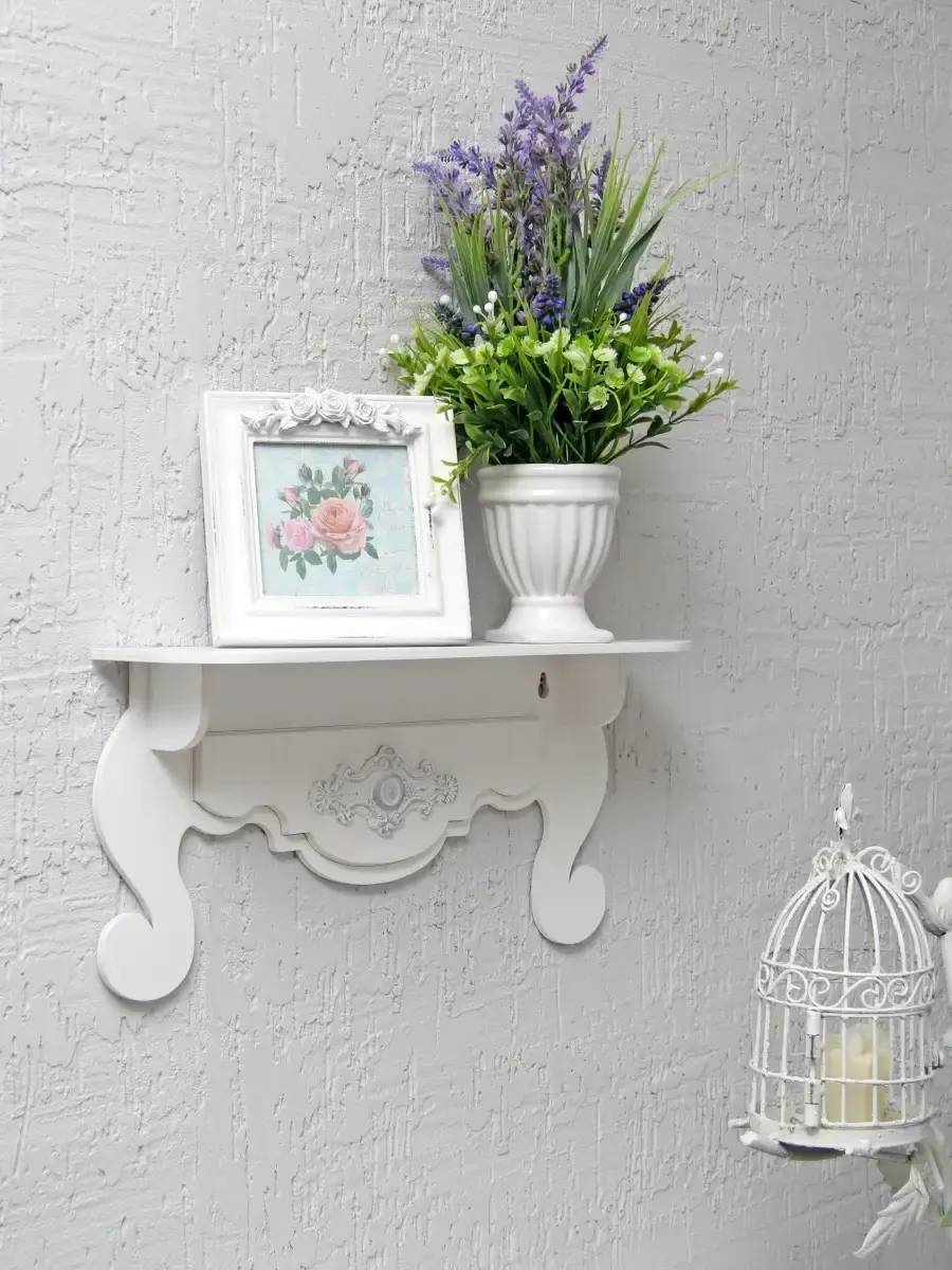 Небольшая, декоративная полочка для создания уютного пространства и декорирования интерьера в стиле прованс. Размеры полки 38х10х18,5 см.Глубина полочки 10 см.