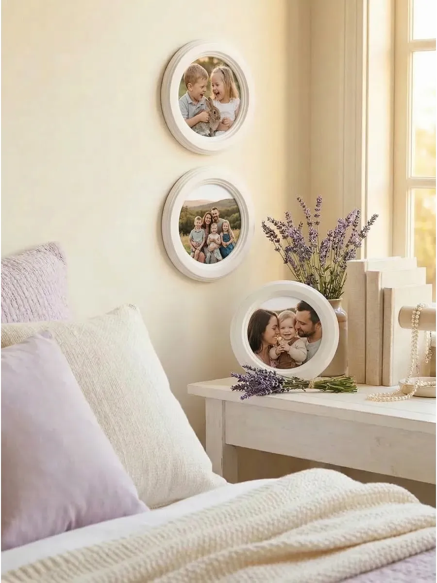 Создайте уютную галерею любимых воспоминаний с набором стильных круглых фоторамок. Они подчеркнут интерьер и помогут красиво оформить семейные фотографии, детские снимки или памятные моменты.