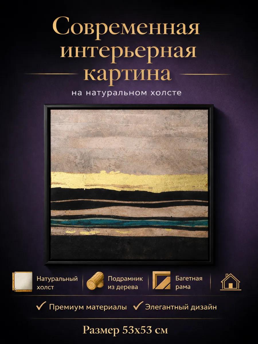 Современная интерьерная картина с натуральной золотой патиной станет акцентом в гостиной, спальне, кабинете или прихожей.