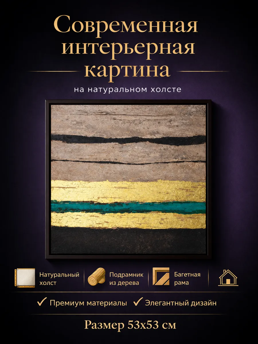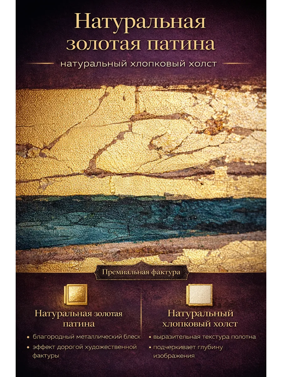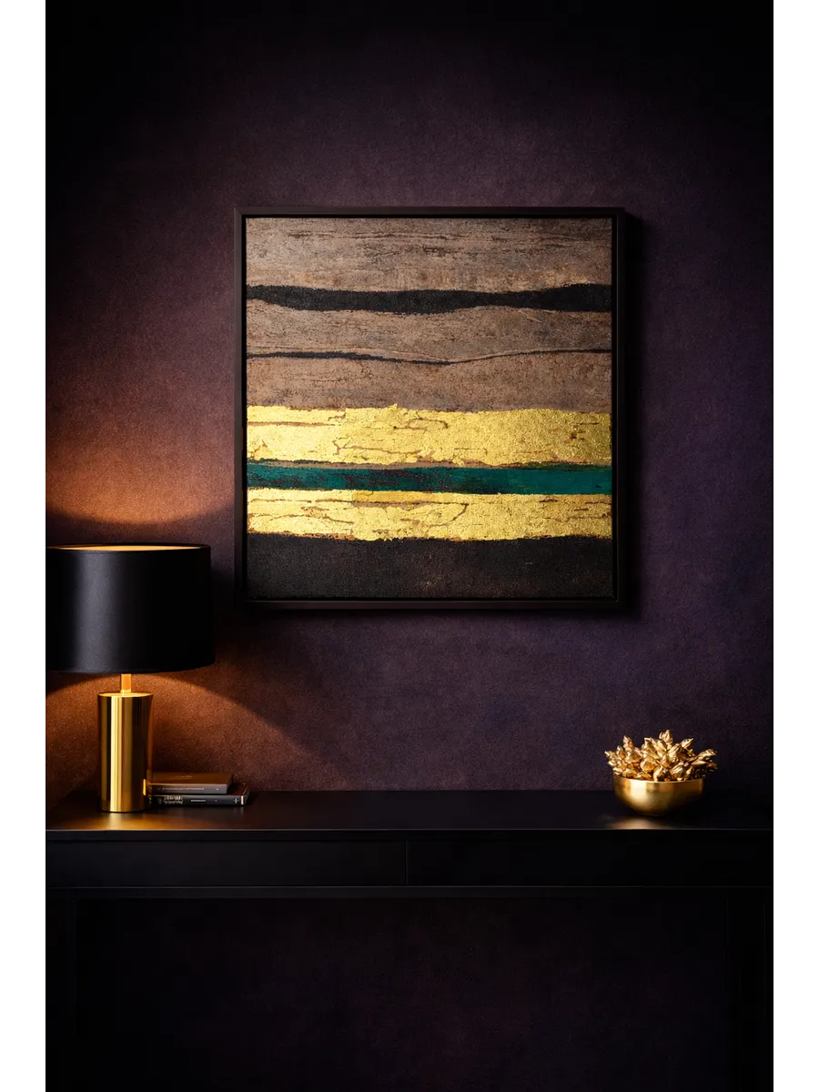 Современная интерьерная картина с натуральной золотой патиной станет акцентом в гостиной, спальне, кабинете или прихожей.