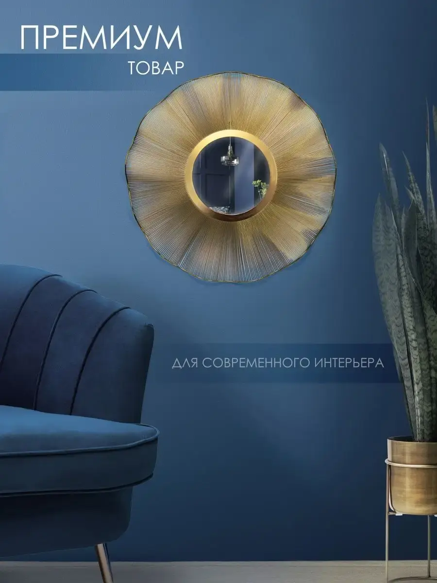 Настенный декор для современного интерьера. Большое металлическое настенное зеркало. Настенная художественная скульптура, металлический солнечный цветок с акцентом "Золотая планета". Золотое металлическое зеркало со вставкой из натурального зеркала. Панно представлены в трех размерах: 75 см, 60 см, 46 см и комплект из трех панно разного размера. Настенный Арт объект украсит интерьер гостиной, прихожей, спальной комнат. Оформление стен этими панно подойдет для любого интерьера, универсальные цвета золотой, синий. Металлический декор для стен добавляет вашему интерьеру много блеска, освежающего ощущения природы и создает непринужденную атмосферу. Это идеальный выбор для современного дома. Художественный цветок ручной работы с ручной росписью - лучший подарок для друзей и семьи. Подарки на новоселье или свадьбу. Украсьте свой дом или сад этим потрясающим 3D-декором для стен в форме цветка. Декор изготовлен из металла, имеет идеальную форму, сварен из гладких металлических спиц, а затем отполирован. Подходит для любых чистых и гладких стен, плитки, окон, металла, пластика и шкафов. Это филигранное металлическое настенное искусство ручной работы с мягким кованым железом выглядит роскошно, является лучшим выбором для вашего внутреннего и наружного декора.