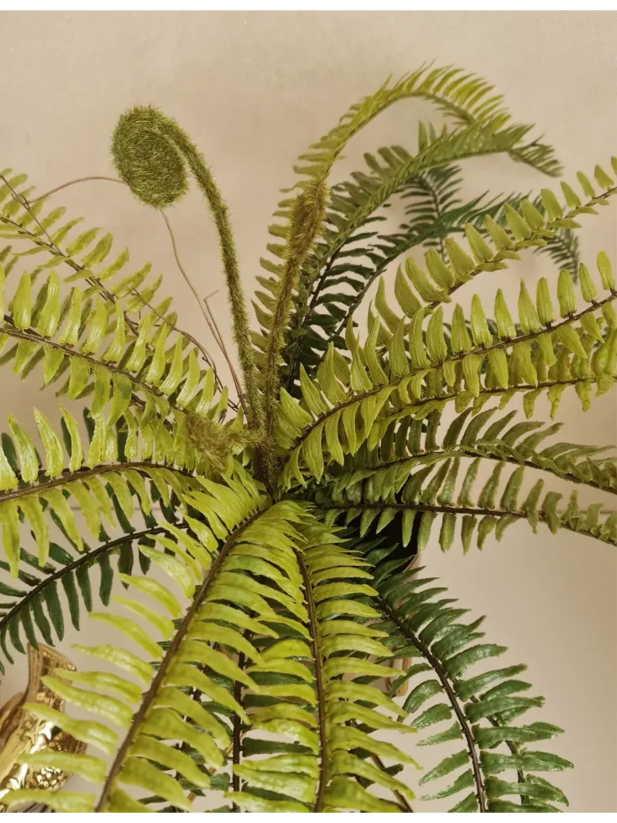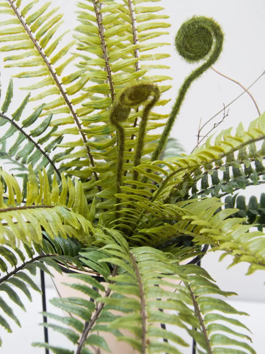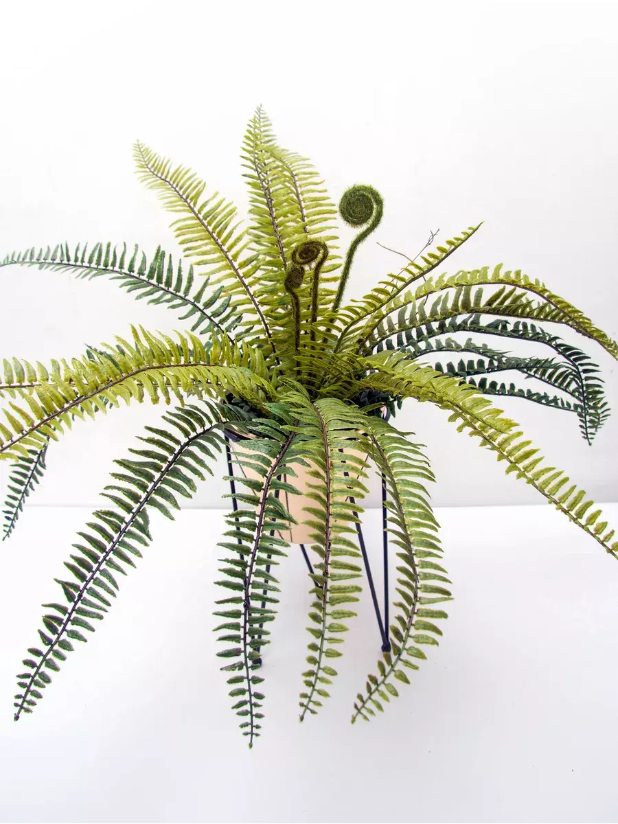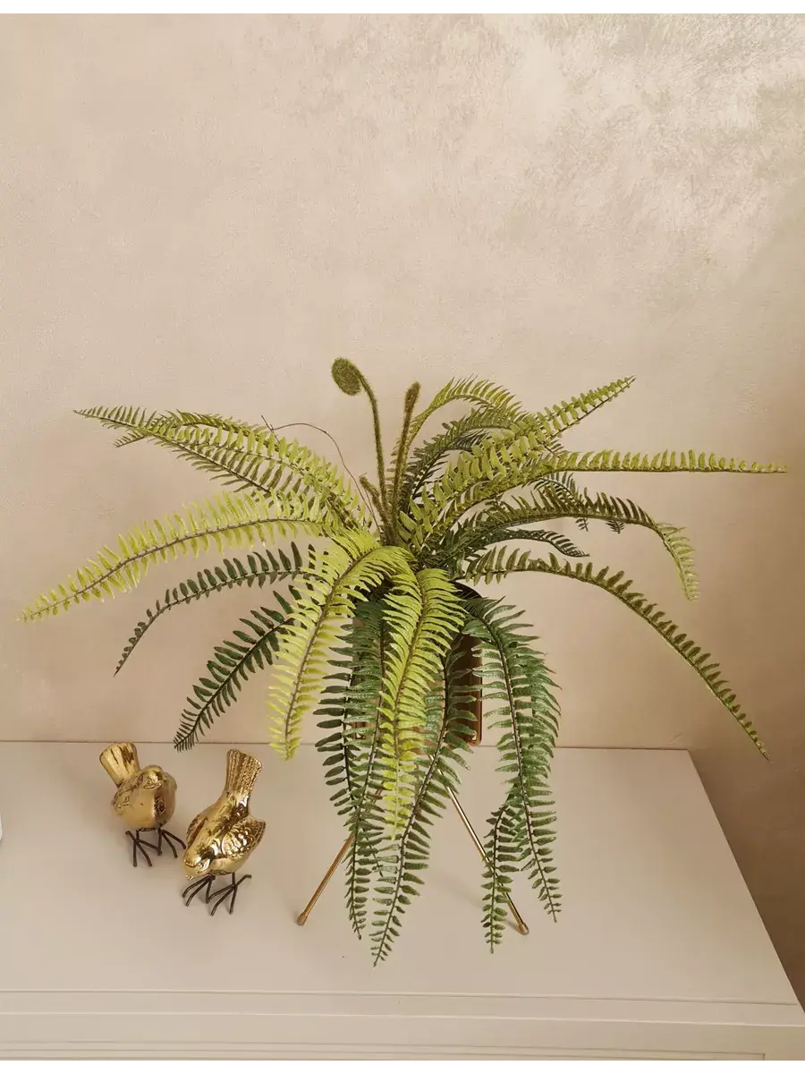 Папоротник интерьерный. Это растение станет великолепным дополнением вашего интерьера, создавая атмосферу уюта и гармонии. Он идеально подходит для тех, кто ценит красоту природы, но не хочет тратить время на уход за живыми растениями. Реалистичные детали каждого листа делают композицию живой и привлекательной. Такой элемент декора прекрасно вписывается в гостиную, спальню или офис, придавая пространству завершённый вид. Искусственные цветы не выцветают и не требуют полива, что позволяет наслаждаться их красотой без лишних хлопот.