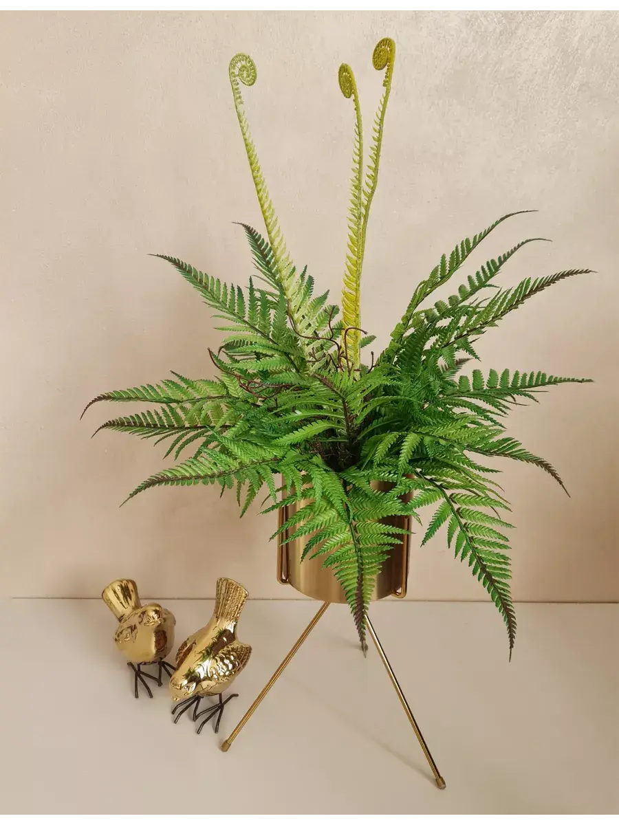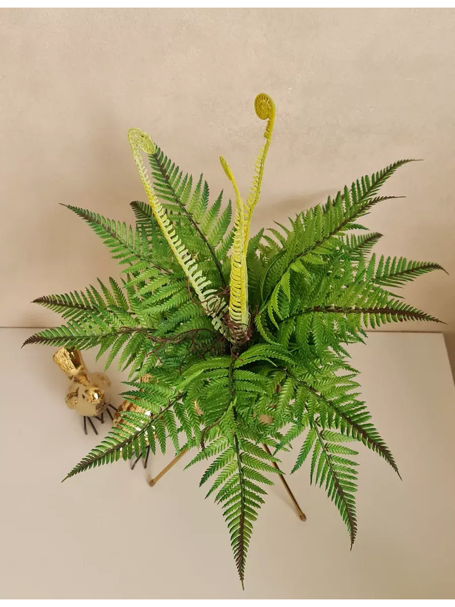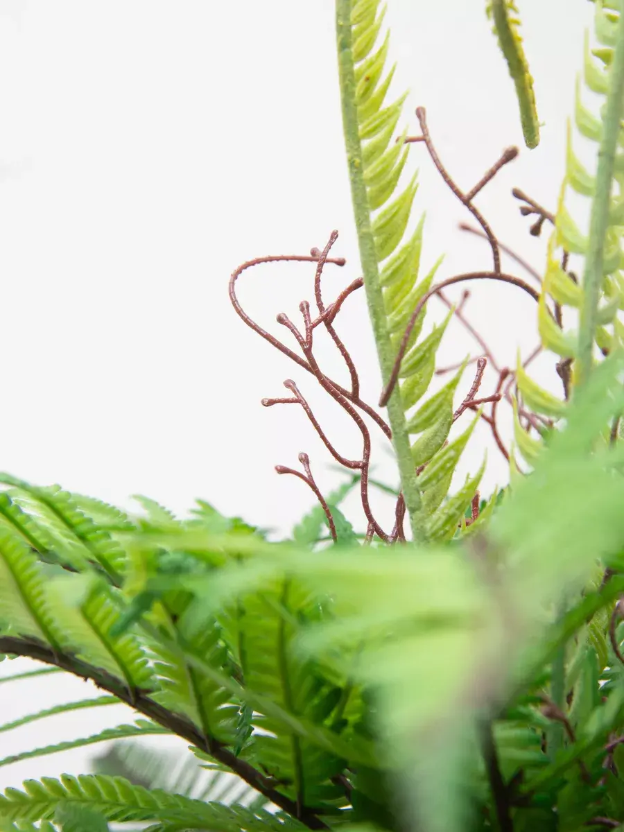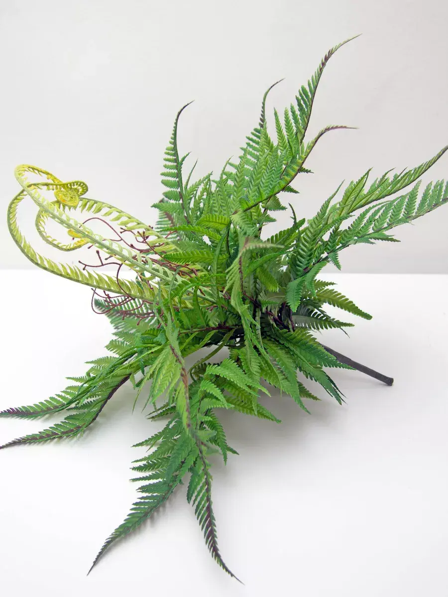 Папоротник интерьерный. Это растение станет великолепным дополнением вашего интерьера, создавая атмосферу уюта и гармонии. Он идеально подходит для тех, кто ценит красоту природы, но не хочет тратить время на уход за живыми растениями. Реалистичные детали каждого листа делают композицию живой и привлекательной. Такой элемент декора прекрасно вписывается в гостиную, спальню или офис, придавая пространству завершённый вид. Искусственные цветы не выцветают и не требуют полива, что позволяет наслаждаться их красотой без лишних хлопот.