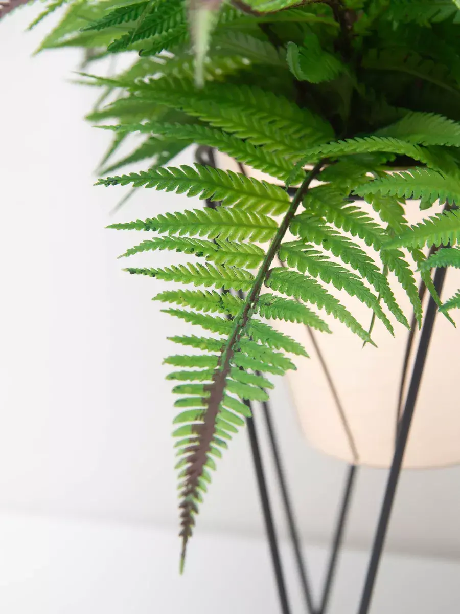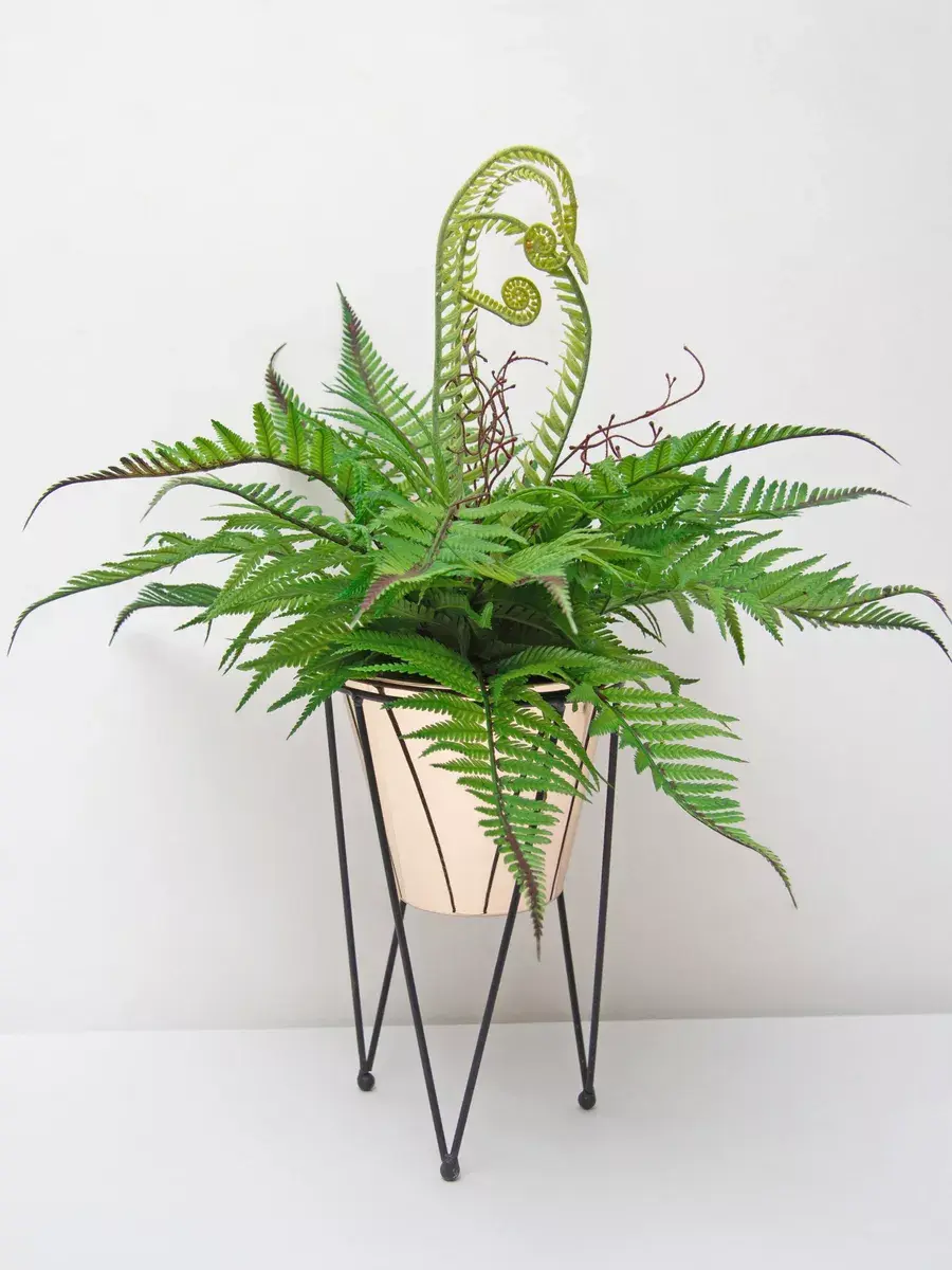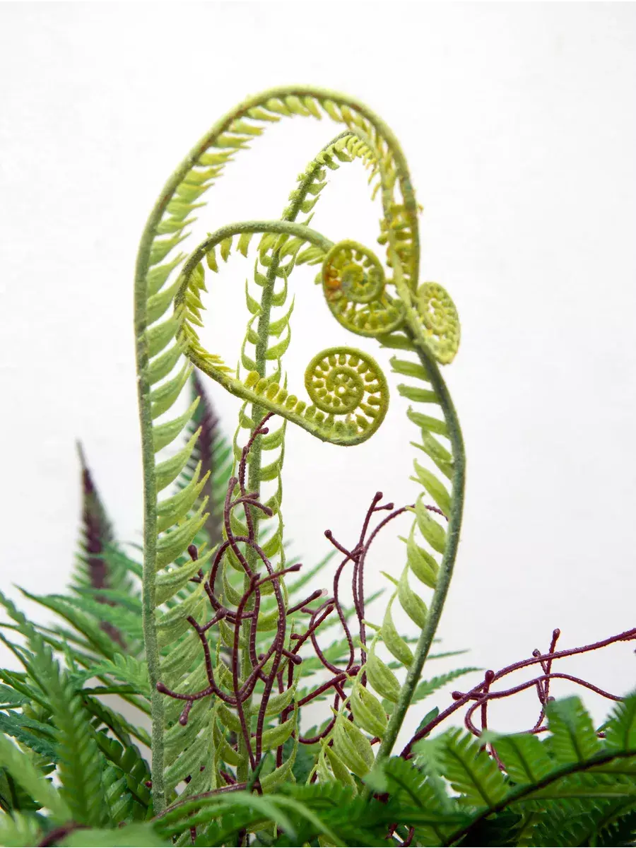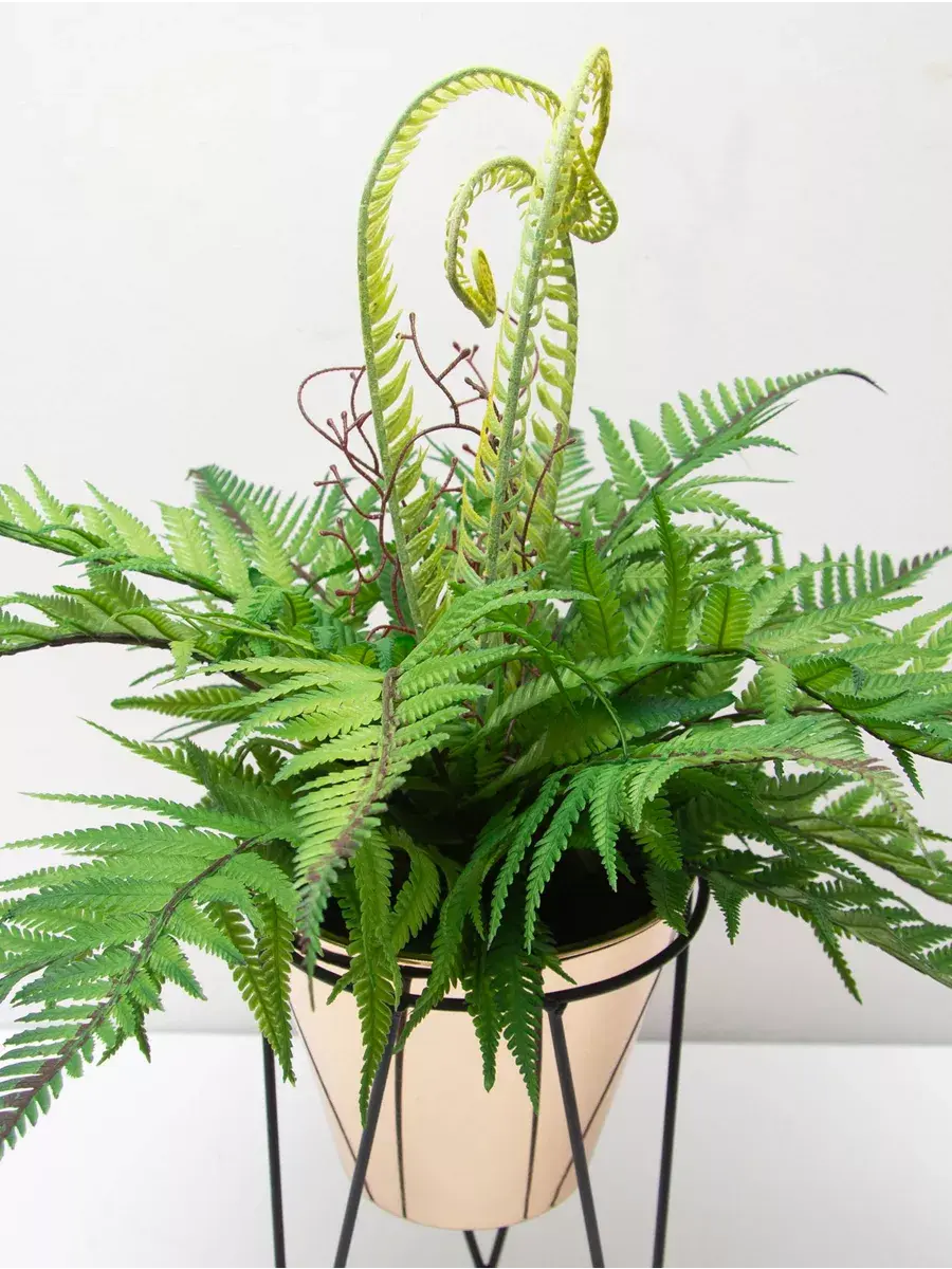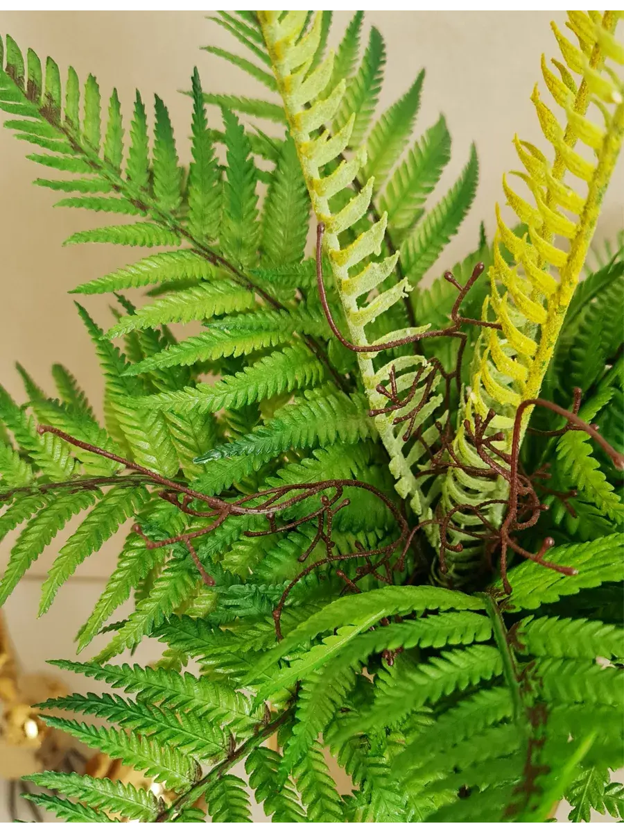 Папоротник интерьерный. Это растение станет великолепным дополнением вашего интерьера, создавая атмосферу уюта и гармонии. Он идеально подходит для тех, кто ценит красоту природы, но не хочет тратить время на уход за живыми растениями. Реалистичные детали каждого листа делают композицию живой и привлекательной. Такой элемент декора прекрасно вписывается в гостиную, спальню или офис, придавая пространству завершённый вид. Искусственные цветы не выцветают и не требуют полива, что позволяет наслаждаться их красотой без лишних хлопот.
