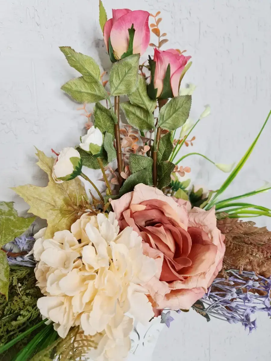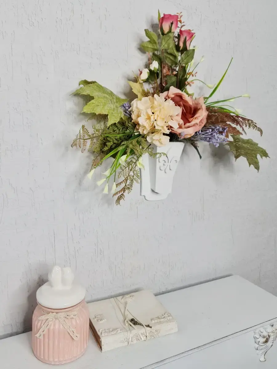 Этот букет из искусственных цветов в кашпо станет великолепным дополнением вашего интерьера, создавая атмосферу уюта и гармонии. Он идеально подходит для тех, кто ценит красоту природы, но не хочет тратить время на уход за живыми растениями. Реалистичные детали каждого цветка делают композицию живой и привлекательной, а пастельные оттенки в стиле прованс добавят нотку нежности в любое помещение. Такой элемент декора прекрасно вписывается в гостиную, спальню или офис, придавая пространству завершённый вид. Искусственные цветы не выцветают и не требуют полива, что позволяет наслаждаться их красотой без лишних хлопот. Выберите этот букет для создания уюта и стиля в вашем доме.