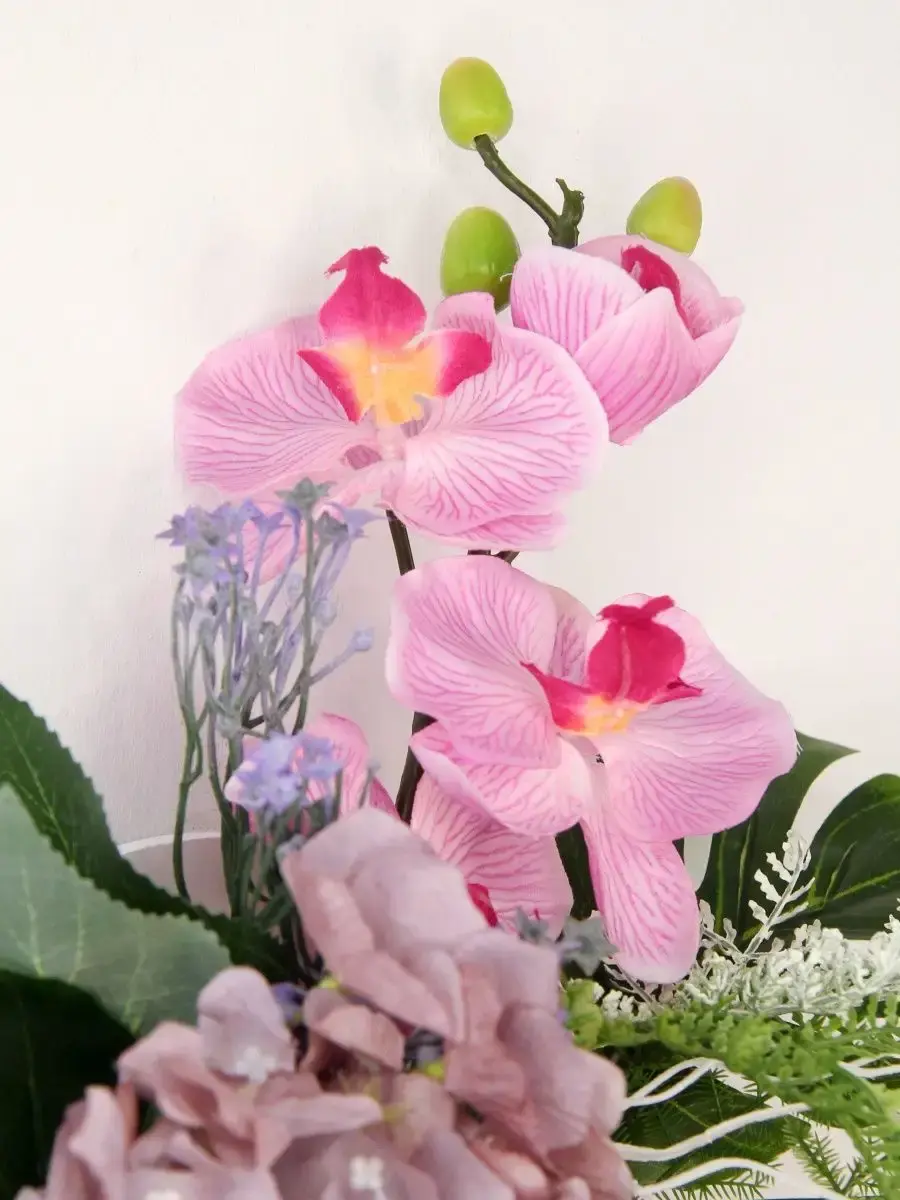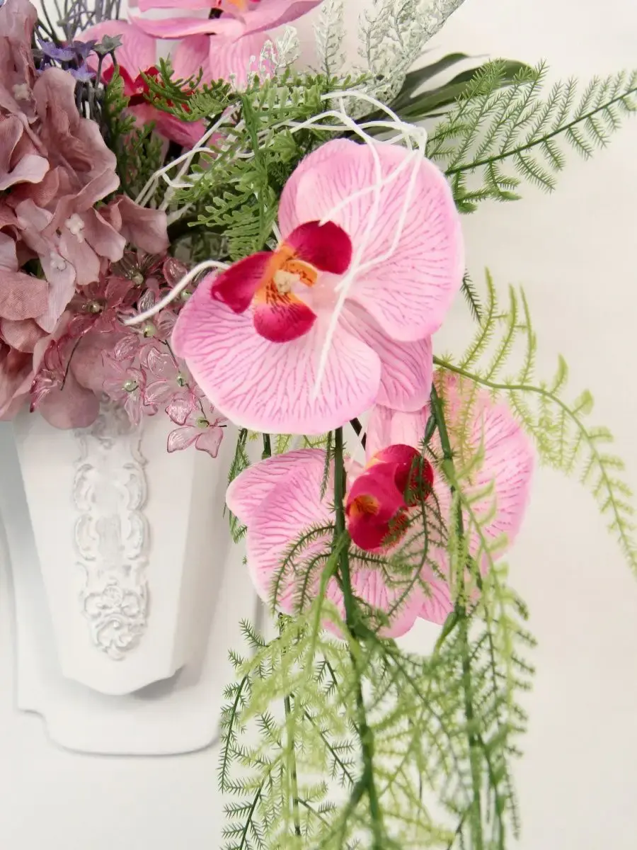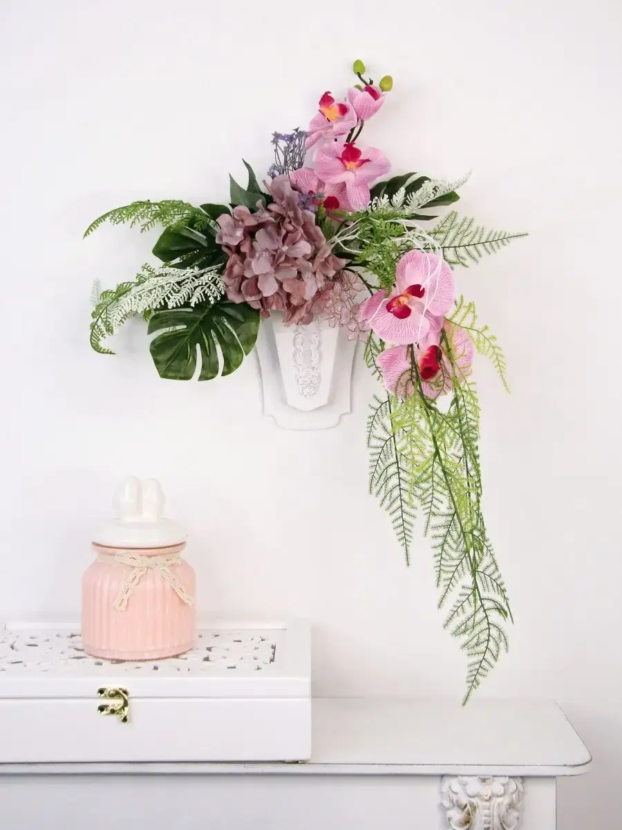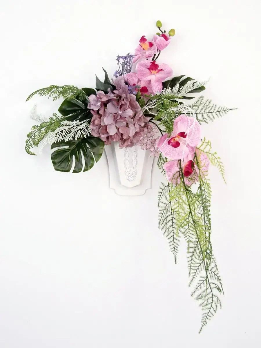 Авторская настенная композиция из интерьерных растений в деревянном кашпо. Панно выполнена по индивидуальному проекту, с использованием папоротников, эвкалиптов, гортензий, орхидей и экзотических ампельных растений. Настенный декор добавит в интерьер легкости, романтики и весеннего настроения. Настенное панно для оформления прихожей, спальни или ванной комнаты, декорирования пространства возле зеркала или в пустом простенке. Разнообразие расцветок, качественные цветы и растения не оставят Вас равнодушными и будут украшать Ваш дом. Деревянное кашпо окрашено акриловой эмалью, надежно удерживает композицию. На задней стенке кашпо зубчатый крепеж крепление для стены в комплекте. Размер композиции 50х60 см.