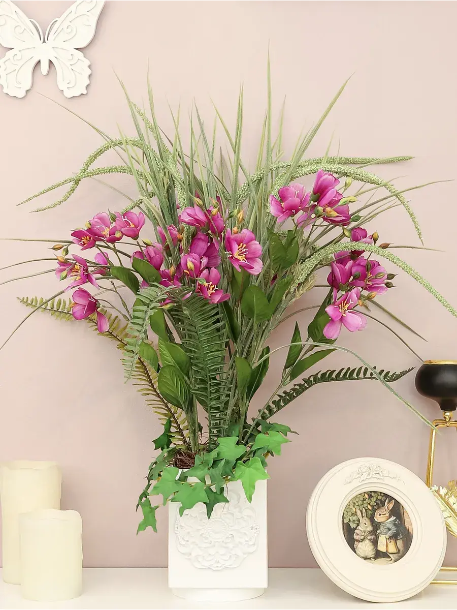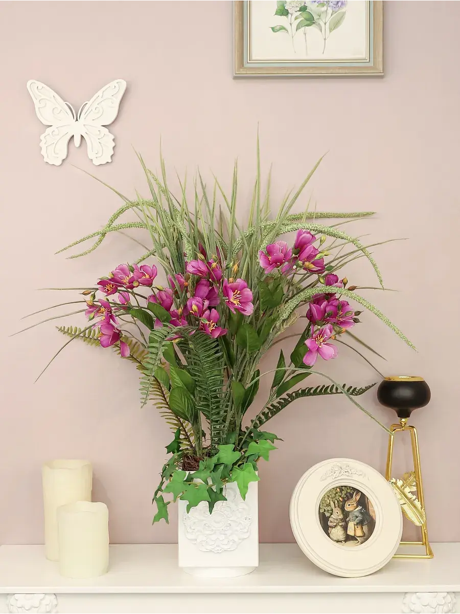 Настоящие цветы требуют особого ухода, а искусственные варианты позволяют избежать хлопот с поливом и освещением, оставаясь при этом привлекательными. Растения надежно закреплены в горшок и создают уютную атмосферу, которая украсит каждый уголок вашего дома. Используйте большие и яркие цветы для создания акцентов, и пусть ваша комната преобразится и наполнится гармонией. Букет идеально подойдет как для домашнего декора, так и для офисного пространства, добавляя нотки свежести и уюта.