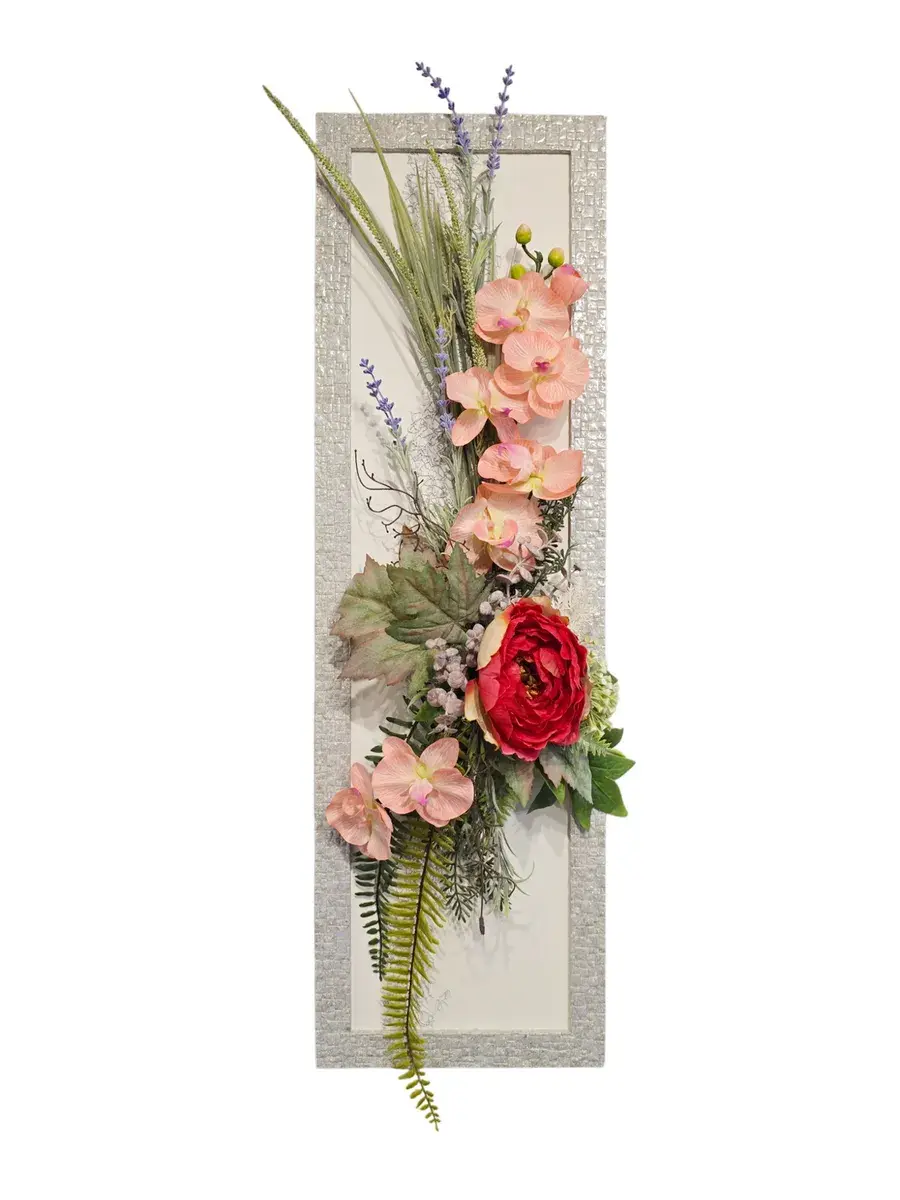Настенное панно с искусственными цветами станет ярким акцентом в вашем интерьере. Эта композиция в раме оформлена стильными цветами, которые гармонично дополняют композицию, создавая атмосферу уюта и нежности. Подходит для украшения гостиной или спальни, придавая пространству особый шарм. Длинные лианы эффектно свисают, добавляя динамичности, а яркие растения словно оживляют стену. Настенное украшение станет не только красивым элементом декора, но и практичным решением для тех, кто хочет избежать забот о живых растениях. Панно легко монтируется на стену, что позволяет быстро изменить обстановку в комнате. Оно отлично впишется в любые стили интерьера, от классического до современного, придавая пространству дома завершённый вид. Это изделие не только радует глаз, но и создает теплую атмосферу в вашем доме.