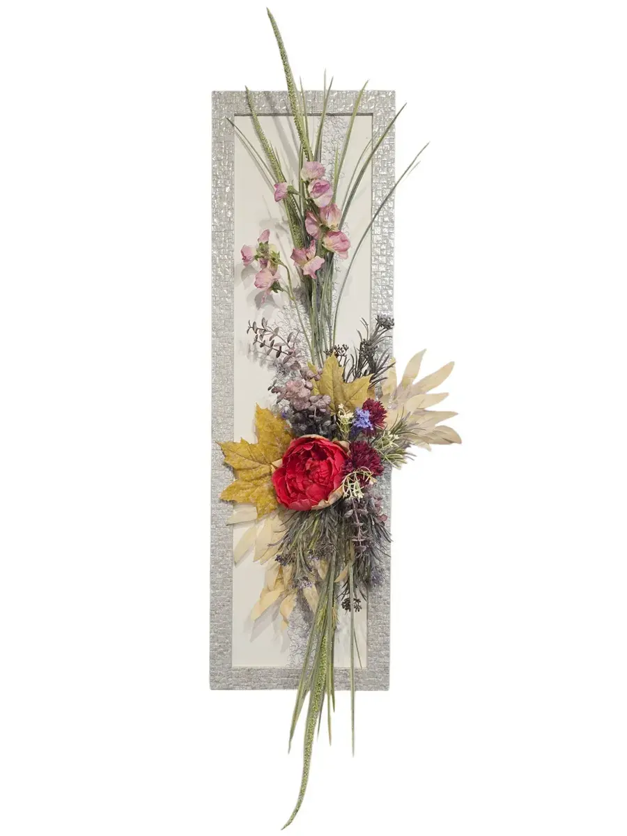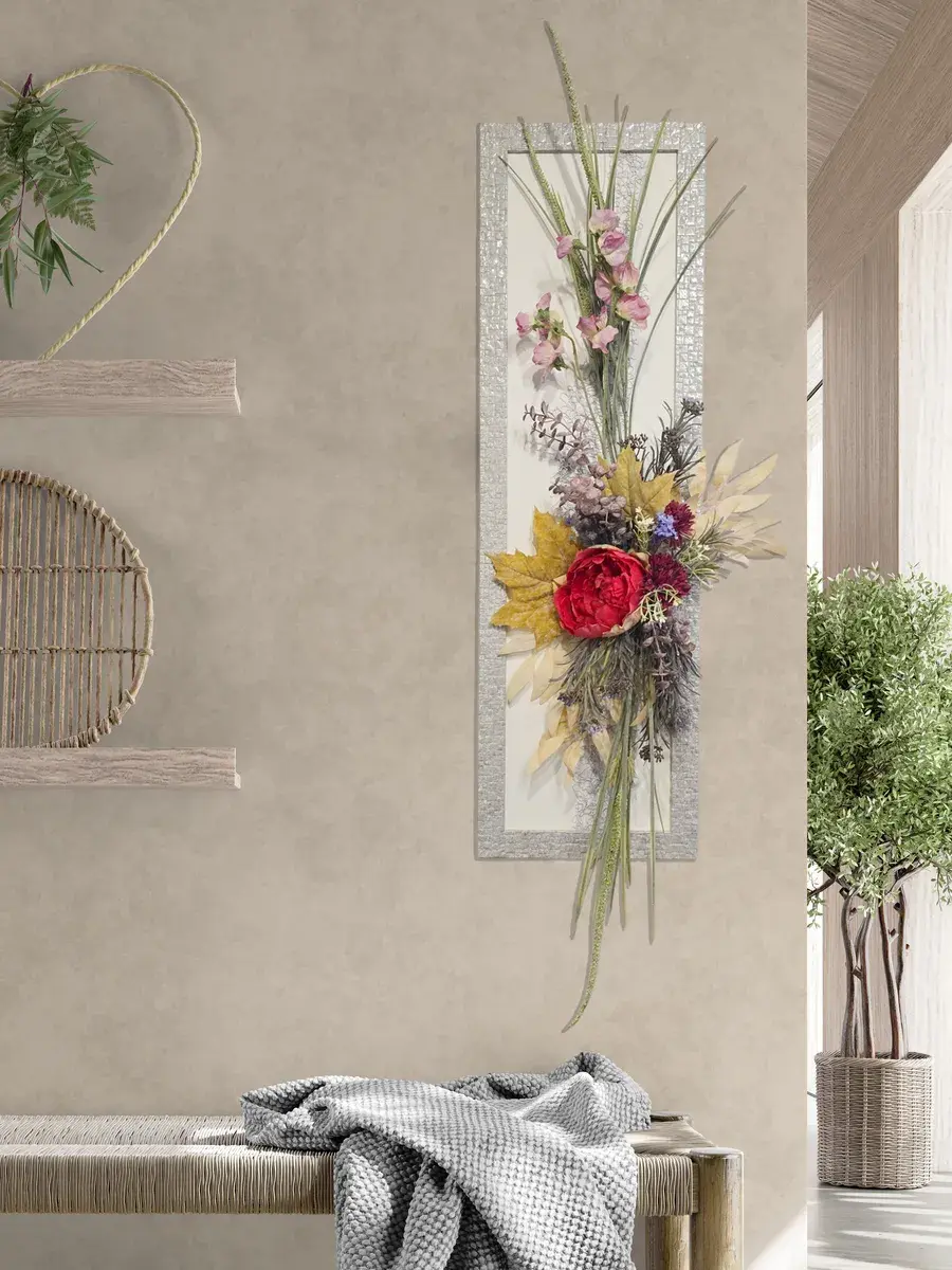 Настенное панно с искусственными цветами станет ярким акцентом в вашем интерьере. Эта композиция в раме оформлена стильными цветами, которые гармонично дополняют композицию, создавая атмосферу уюта и нежности. Подходит для украшения гостиной или спальни, придавая пространству особый шарм. Длинные лианы эффектно свисают, добавляя динамичности, а яркие растения словно оживляют стену. Настенное украшение станет не только красивым элементом декора, но и практичным решением для тех, кто хочет избежать забот о живых растениях. Панно легко монтируется на стену, что позволяет быстро изменить обстановку в комнате. Оно отлично впишется в любые стили интерьера, от классического до современного, придавая пространству дома завершённый вид. Это изделие не только радует глаз, но и создает теплую атмосферу в вашем доме.