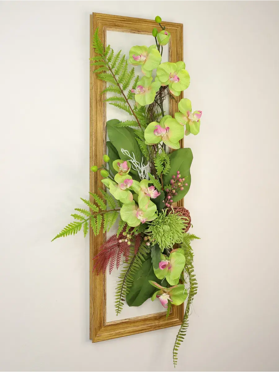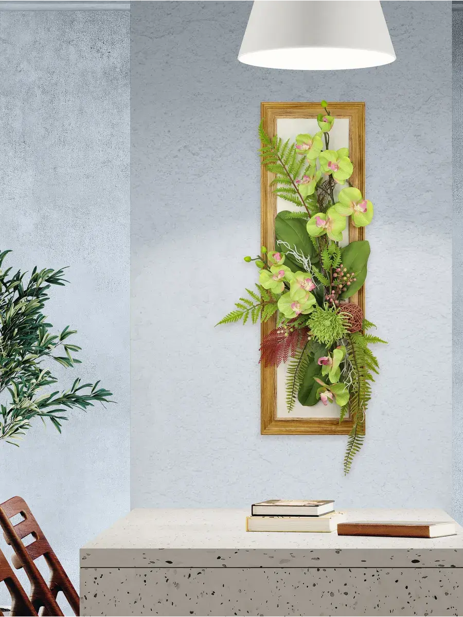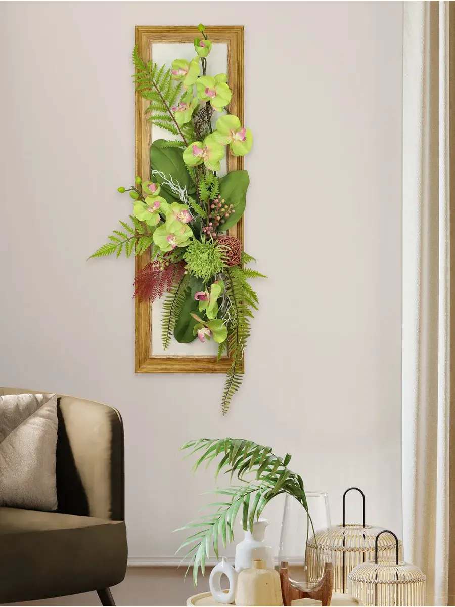 Настенное панно с искусственными цветами станет ярким акцентом в вашем интерьере. Эта композиция в раме оформлена стильными цветами, которые гармонично дополняют композицию, создавая атмосферу уюта и нежности. Подходит для украшения гостиной или спальни, придавая пространству особый шарм. Длинные лианы эффектно свисают, добавляя динамичности, а яркие растения словно оживляют стену. Настенное украшение станет не только красивым элементом декора, но и практичным решением для тех, кто хочет избежать забот о живых растениях. Панно легко монтируется на стену, что позволяет быстро изменить обстановку в комнате. Оно отлично впишется в любые стили интерьера, от классического до современного, придавая пространству дома завершённый вид. Это изделие не только радует глаз, но и создает теплую атмосферу в вашем доме.