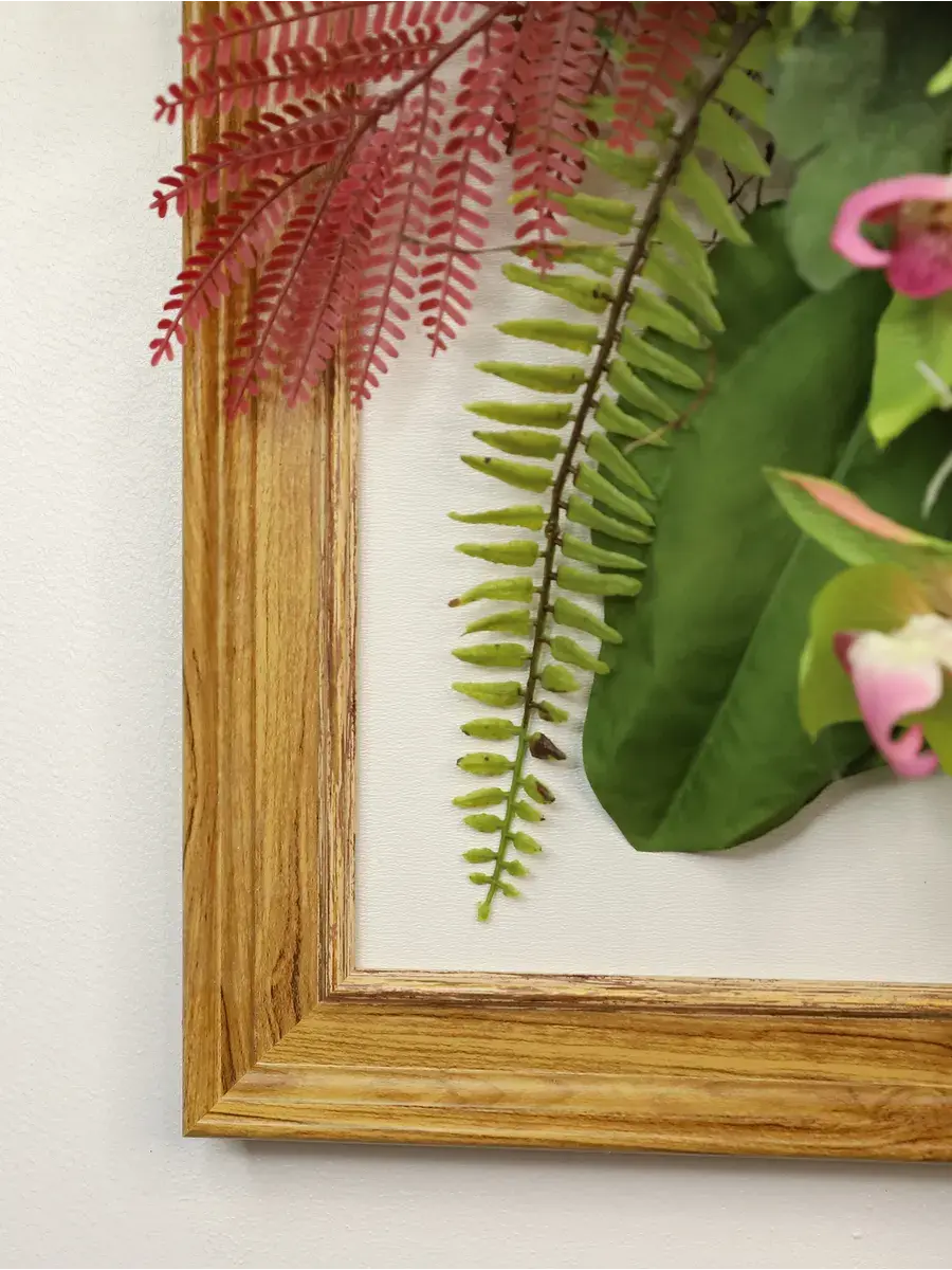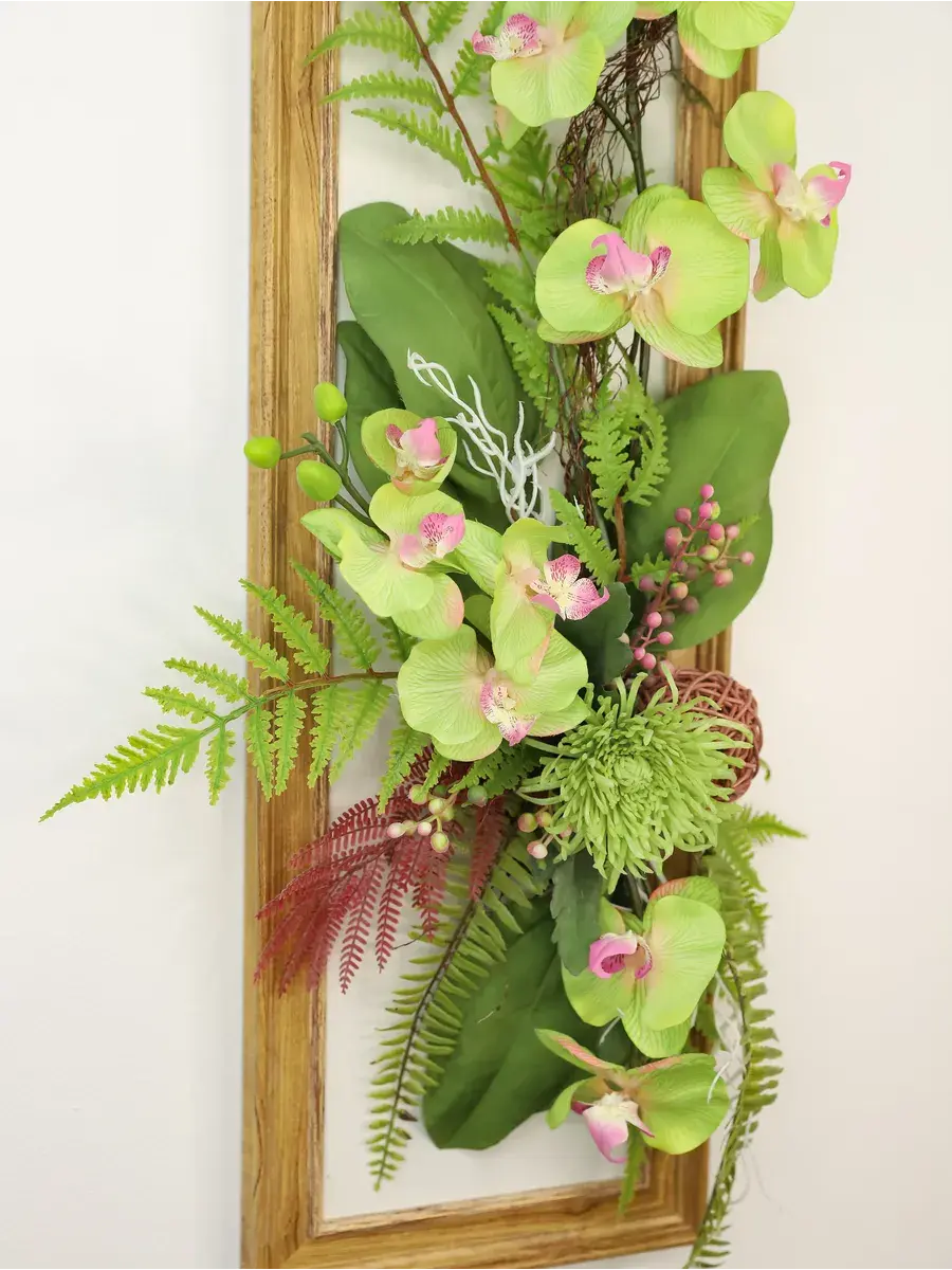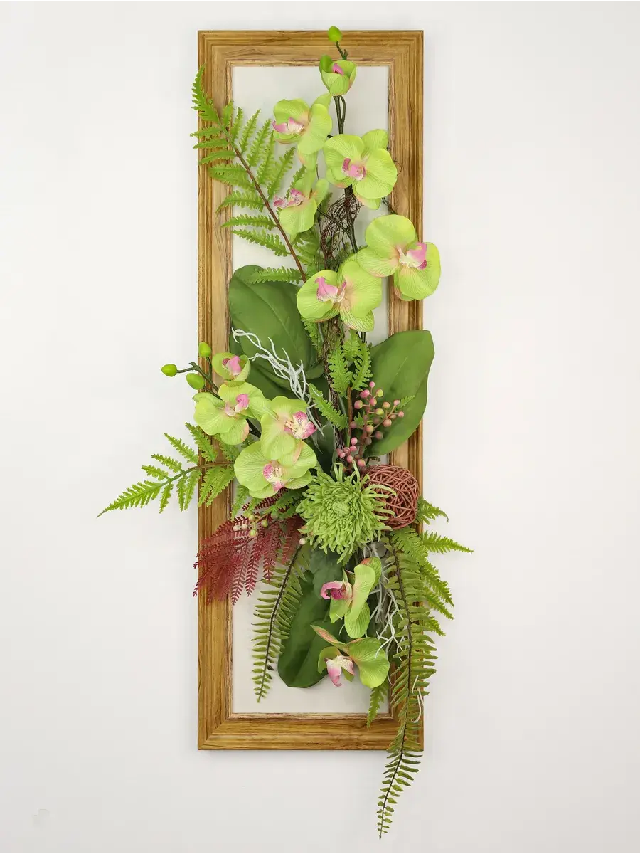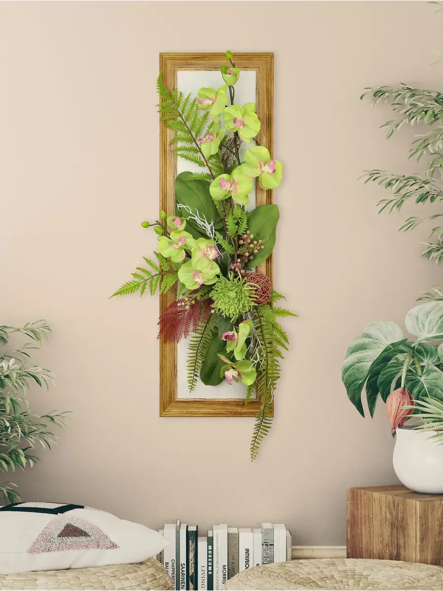 Настенное панно с искусственными цветами станет ярким акцентом в вашем интерьере. Эта композиция в раме оформлена стильными цветами, которые гармонично дополняют композицию, создавая атмосферу уюта и нежности. Подходит для украшения гостиной или спальни, придавая пространству особый шарм. Длинные лианы эффектно свисают, добавляя динамичности, а яркие растения словно оживляют стену. Настенное украшение станет не только красивым элементом декора, но и практичным решением для тех, кто хочет избежать забот о живых растениях. Панно легко монтируется на стену, что позволяет быстро изменить обстановку в комнате. Оно отлично впишется в любые стили интерьера, от классического до современного, придавая пространству дома завершённый вид. Это изделие не только радует глаз, но и создает теплую атмосферу в вашем доме.