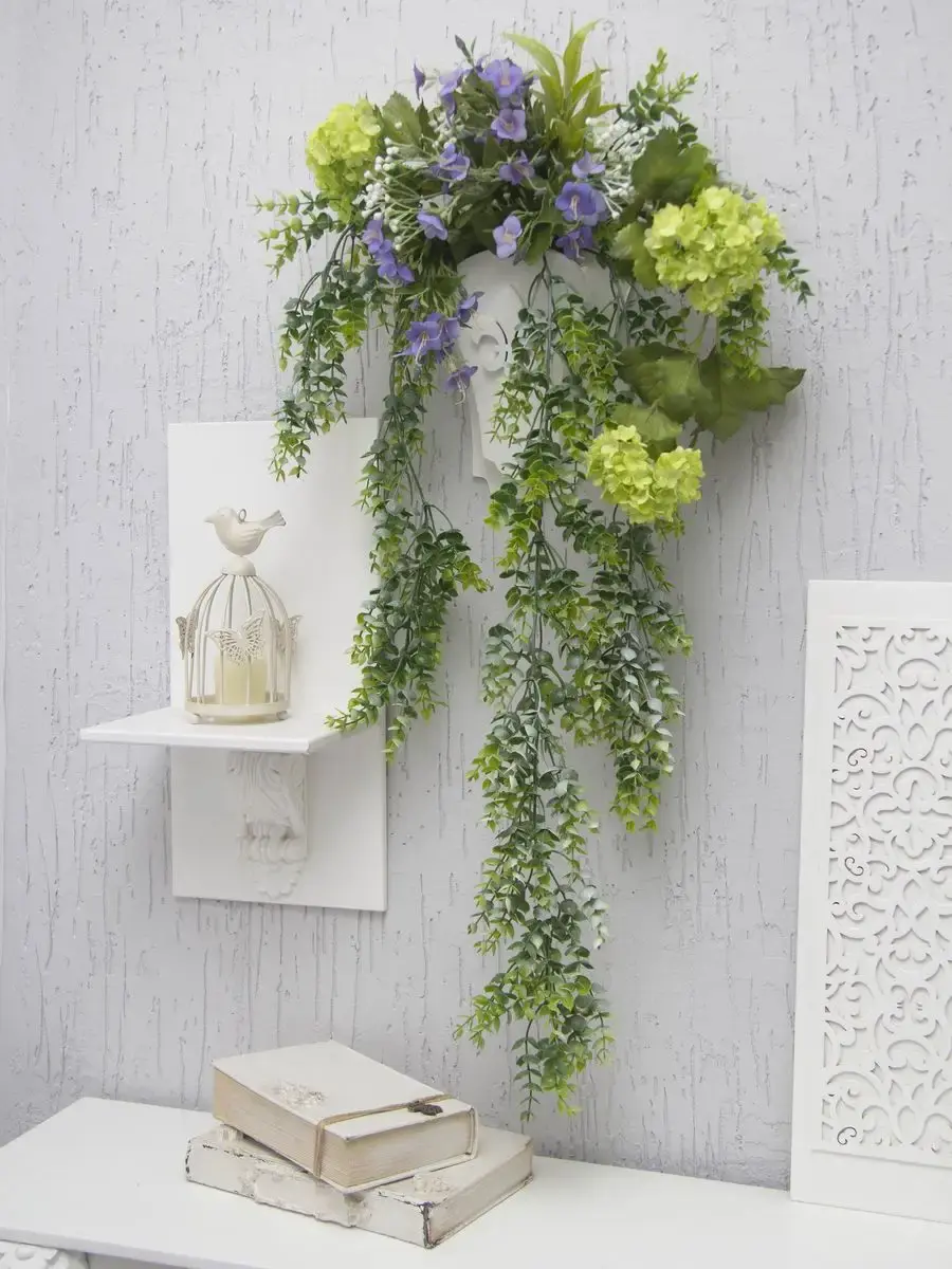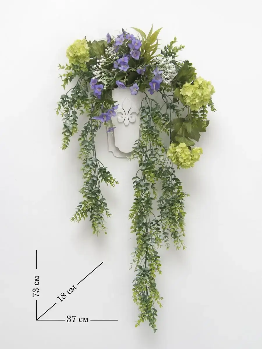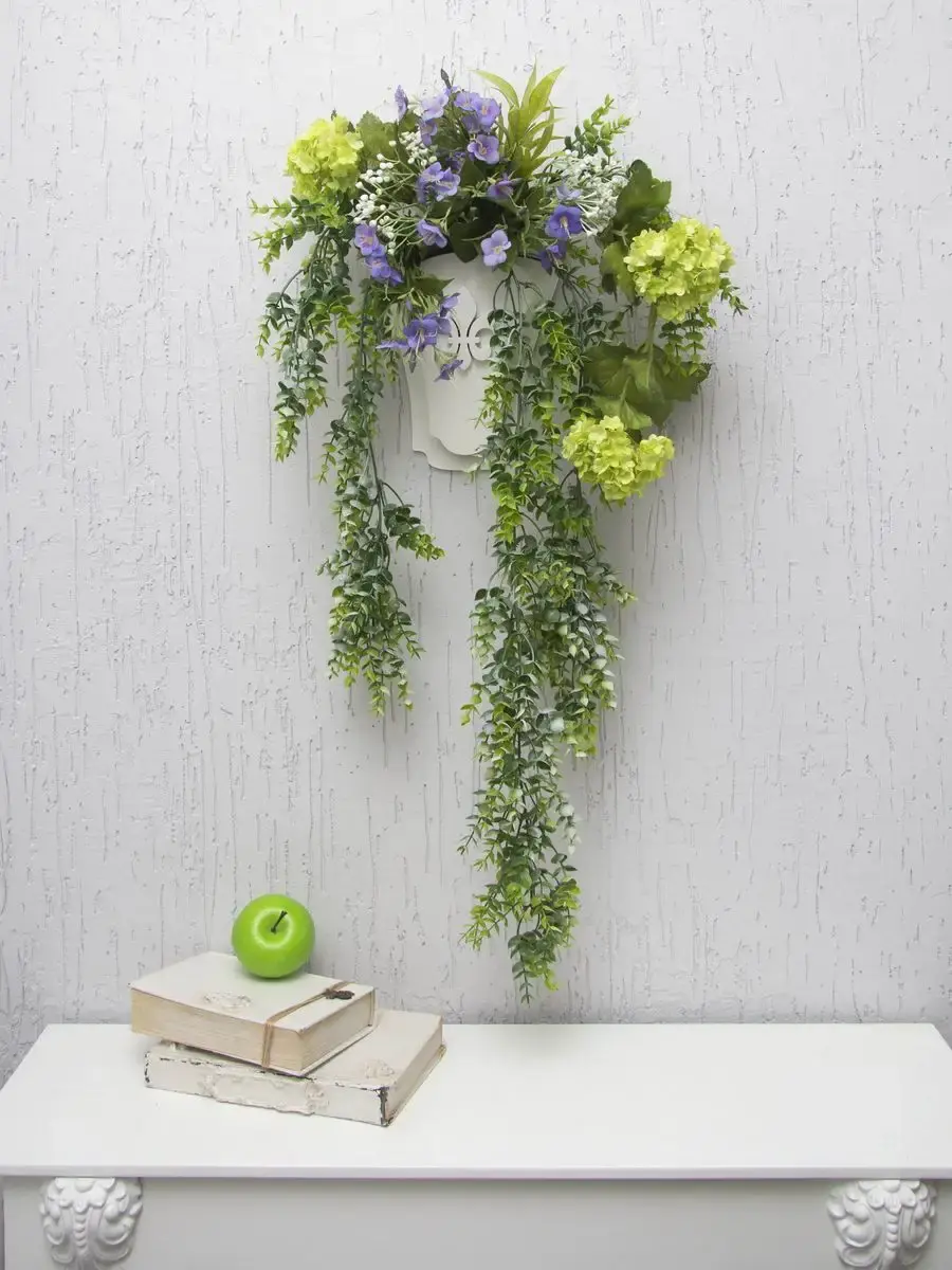 Настенная цветочная композиция в деревянном кашпо с искусственными интерьерными растениями. Выполнена из высококачественных искусственных цветов и ампельных растений , лаванда и гортензия . Размер рамы 25*17 см. В комплекте крепление на стену, шуруп с дюбелем и зубчатый крепеж на кашпо. Отличное украшение к зеркалу, коллекции картин с цветами или в прихожей, где живым цветам недостаточно света. Панно долго будет радовать и добавлять уюта в дом.
