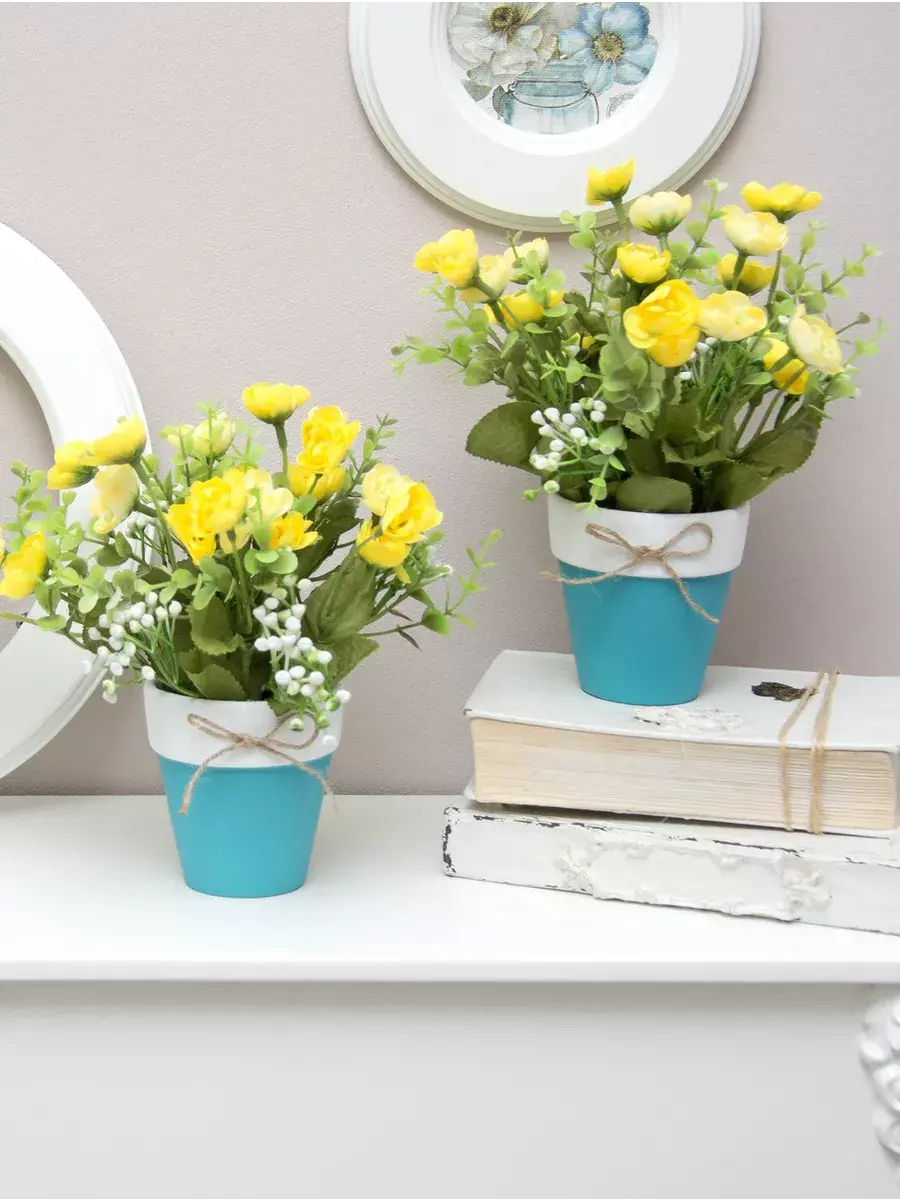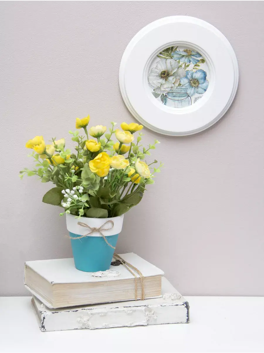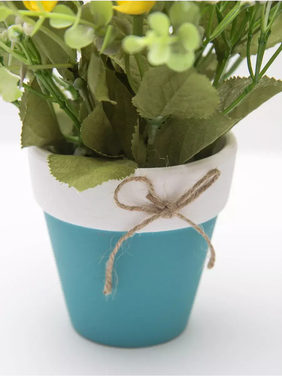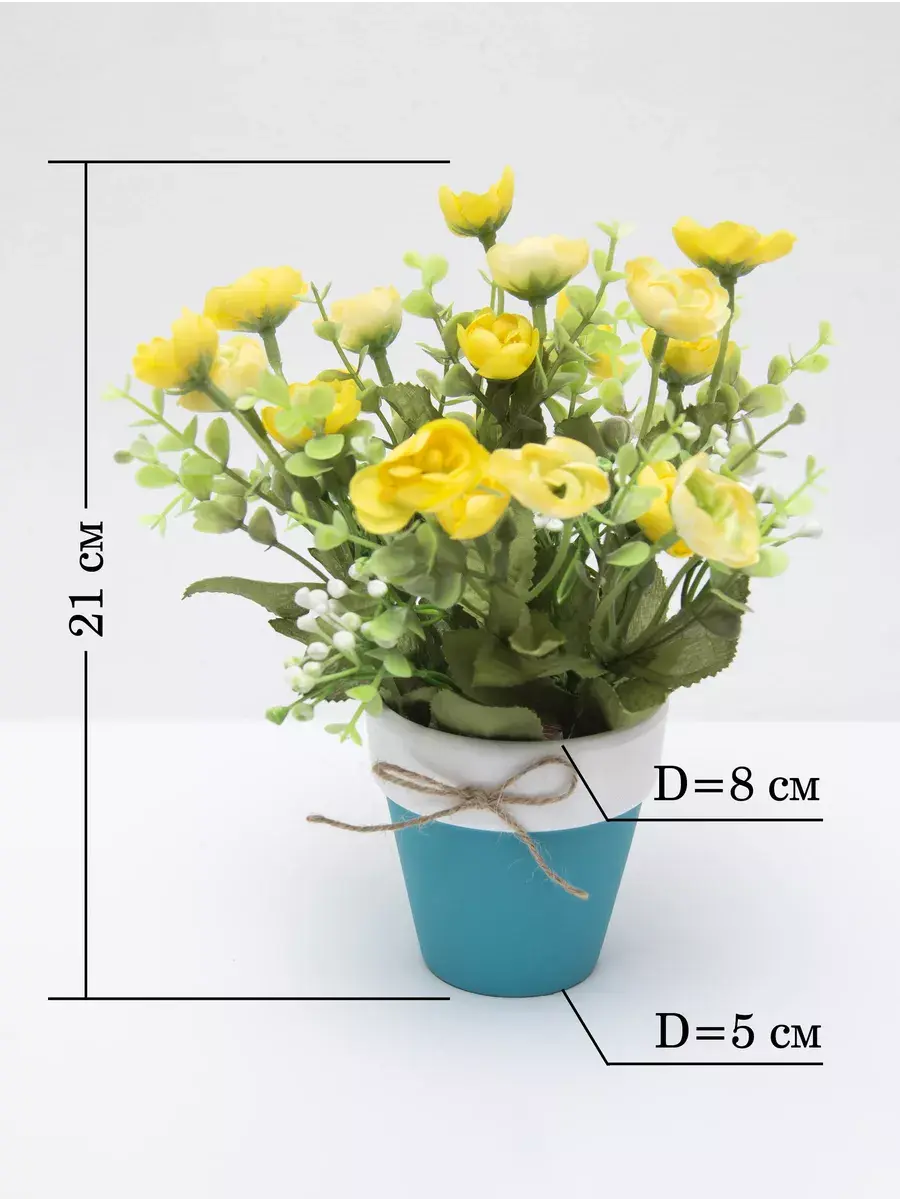 Этот букет из искусственных цветов в кашпо станет великолепным дополнением вашего интерьера, создавая атмосферу уюта и гармонии. Он идеально подходит для тех, кто ценит красоту природы, но не хочет тратить время на уход за живыми растениями. Реалистичные детали каждого цветка делают композицию живой и привлекательной, а пастельные оттенки в стиле прованс добавят нотку нежности в любое помещение. Такой элемент декора прекрасно вписывается в гостиную, спальню или офис, придавая пространству завершённый вид. Искусственные цветы не выцветают и не требуют полива, что позволяет наслаждаться их красотой без лишних хлопот. Выберите этот букет для создания уюта и стиля в вашем доме.