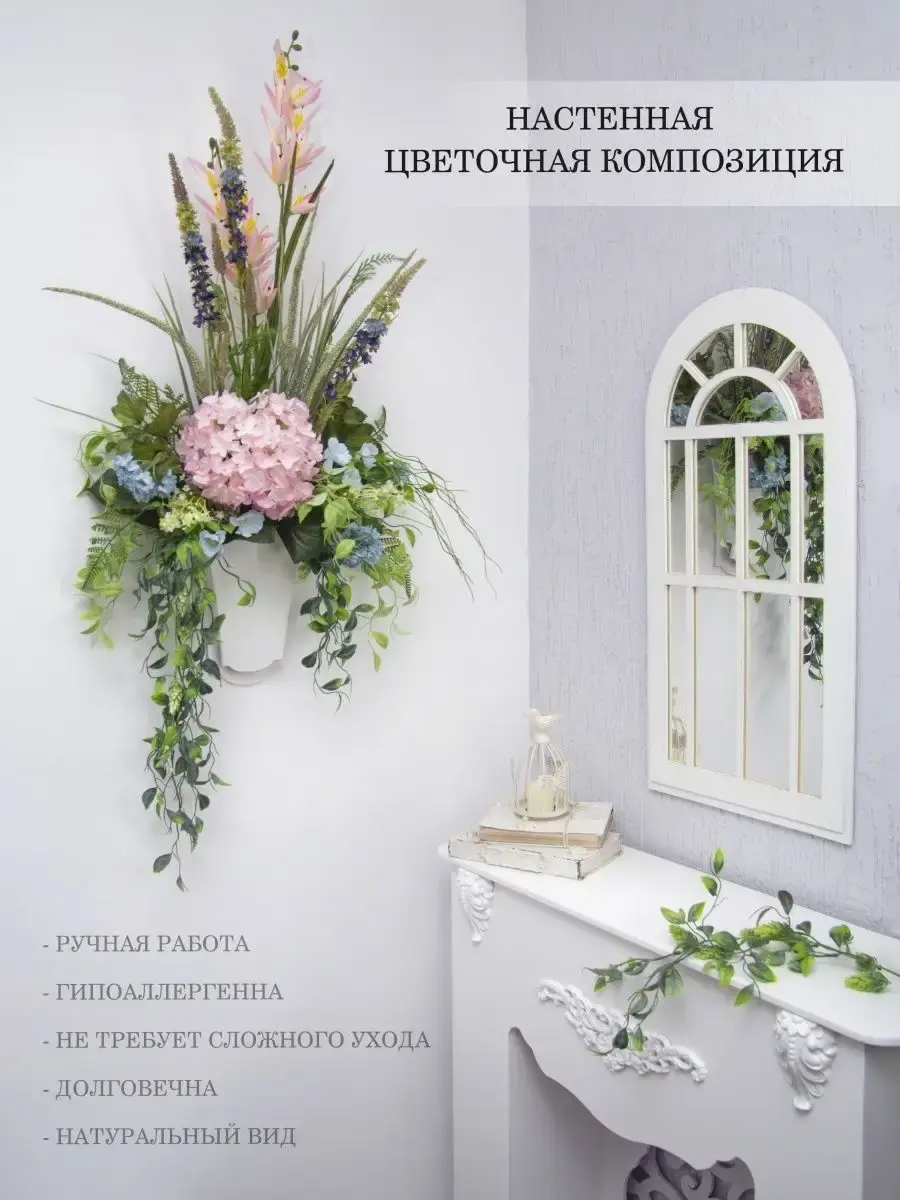 Авторская настенная цветочная композиция в деревянном кашпо. Выполнена из высококачественных материалов, искусственных цветов и растений. Добавит весеннего настроения в любой интерьер. Станет прекрасным украшением вашего дома. Размер композиции указан на фото. Размер кашпо 30,5*20 см.