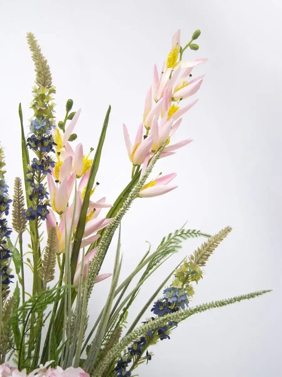Этот букет из искусственных цветов в кашпо станет великолепным дополнением вашего интерьера, создавая атмосферу уюта и гармонии. Он идеально подходит для тех, кто ценит красоту природы, но не хочет тратить время на уход за живыми растениями. Реалистичные детали каждого цветка делают композицию живой и привлекательной, а пастельные оттенки добавят нотку нежности в любое помещение. Такой элемент декора прекрасно вписывается в гостиную, спальню или офис, придавая пространству завершённый вид. Искусственные цветы не выцветают и не требуют полива, что позволяет наслаждаться их красотой без лишних хлопот. Выберите этот букет для создания уюта и стиля в вашем доме.