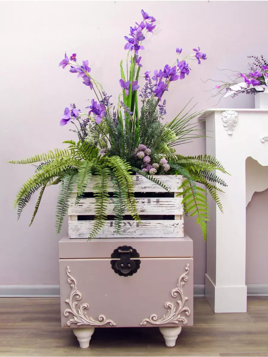 Этот букет из искусственных цветов в кашпо станет великолепным дополнением вашего интерьера, создавая атмосферу уюта и гармонии. Он идеально подходит для тех, кто ценит красоту природы, но не хочет тратить время на уход за живыми растениями. Реалистичные детали каждого цветка делают композицию живой и привлекательной, а пастельные оттенки в стиле прованс добавят нотку нежности в любое помещение. Такой элемент декора прекрасно вписывается в гостиную, спальню или офис, придавая пространству завершённый вид. Искусственные цветы не выцветают и не требуют полива, что позволяет наслаждаться их красотой без лишних хлопот. Выберите этот букет для создания уюта и стиля в вашем доме.