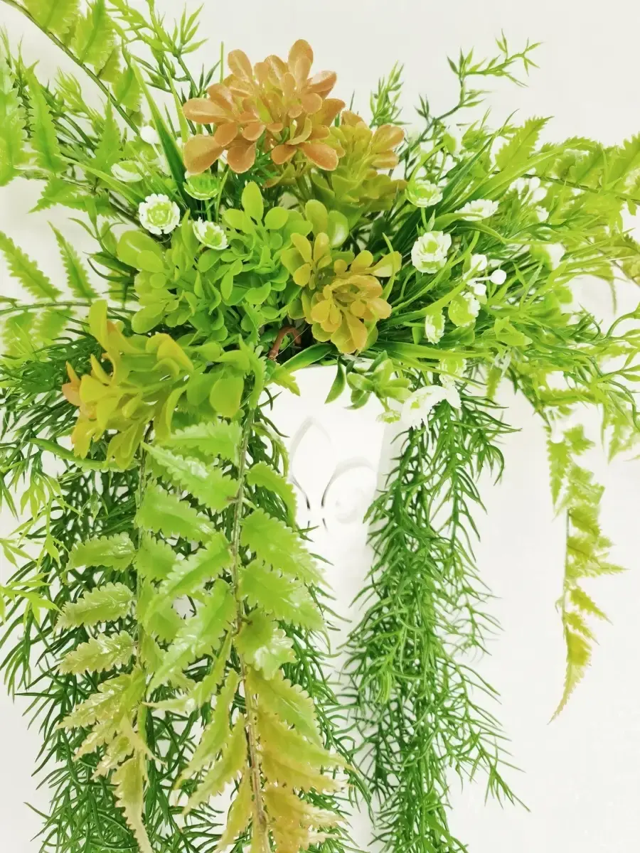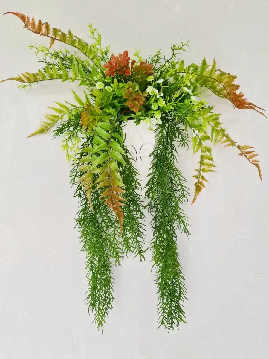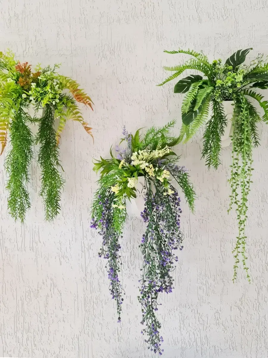Настенная цветочная композиция в деревянном кашпо с искусственными интерьерными растениями. Выполнена из высококачественных искусственных цветов и ампельных растений , лаванда и гортензия . Размер рамы 25*17 см. В комплекте крепление на стену, шуруп с дюбелем и зубчатый крепеж на кашпо. Отличное украшение к зеркалу, коллекции картин с цветами или в прихожей, где живым цветам недостаточно света. Панно долго будет радовать и добавлять уюта в дом.