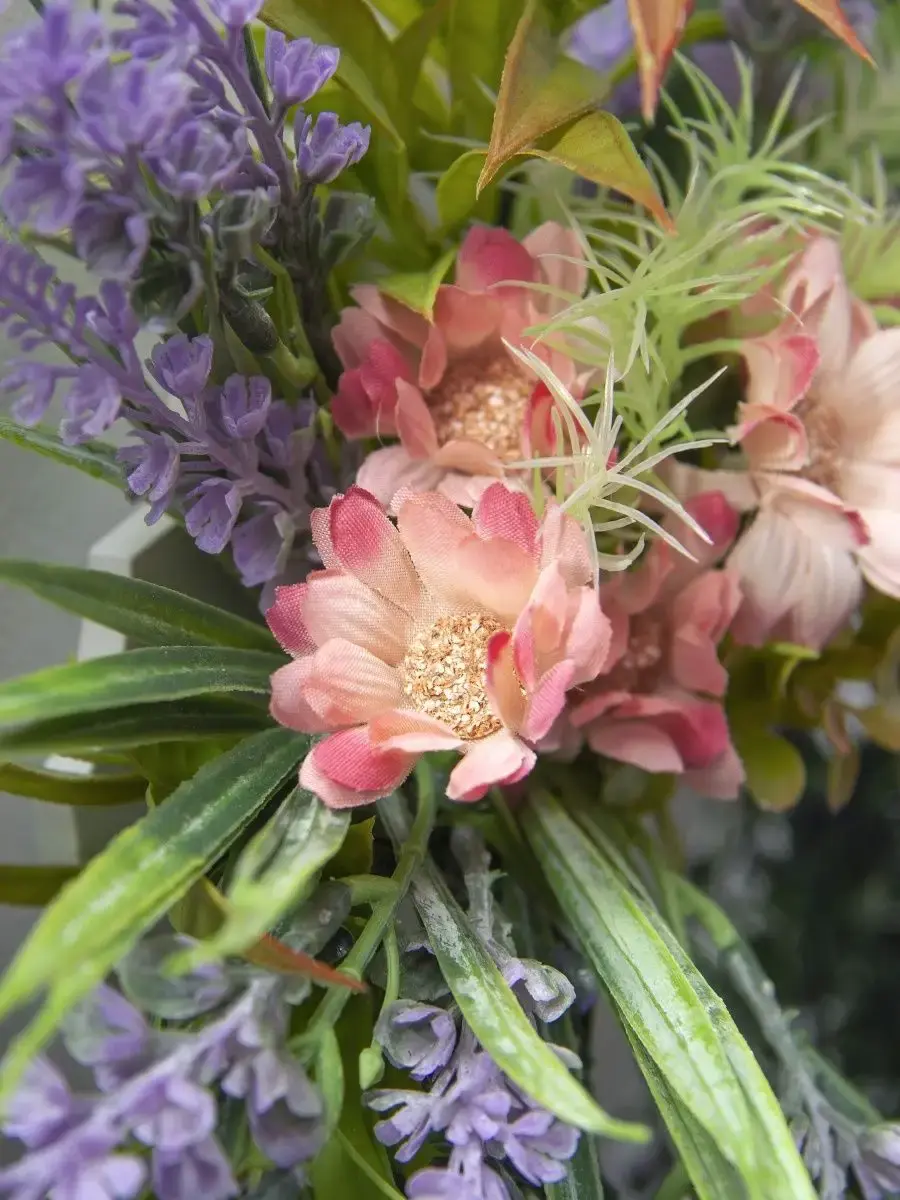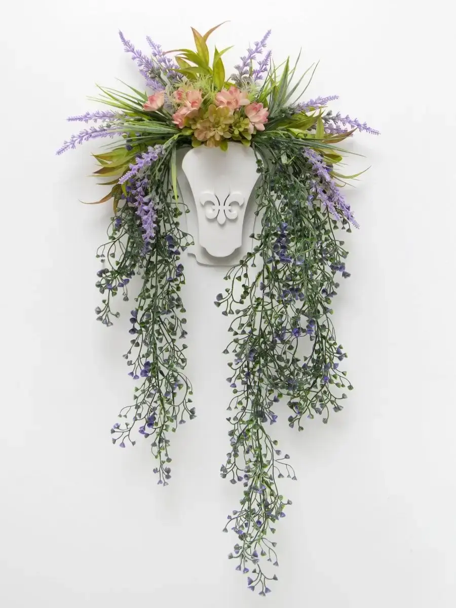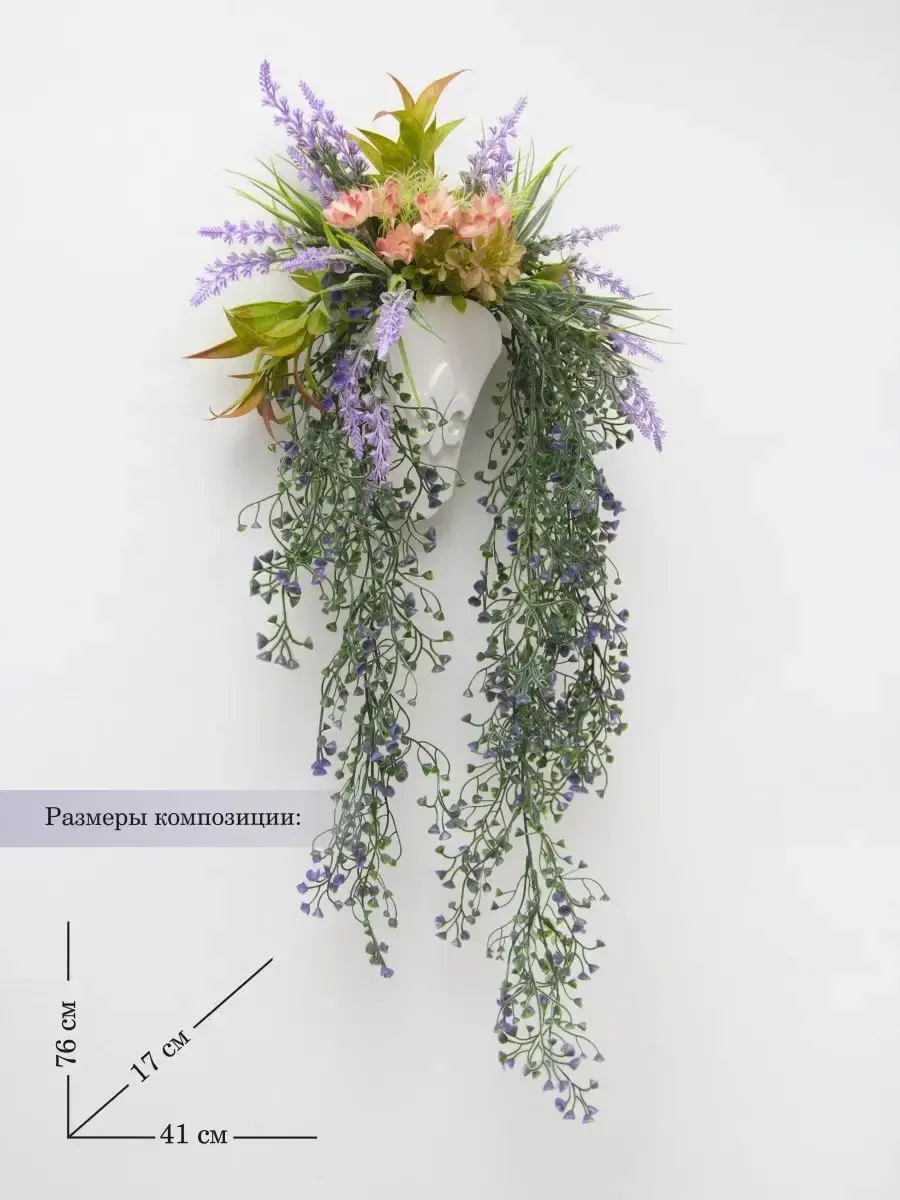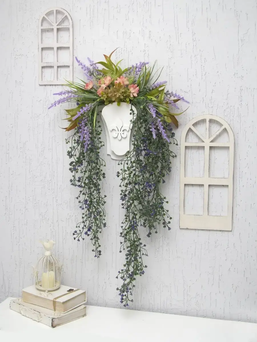 Настенная цветочная композиция в деревянном кашпо с искусственными интерьерными растениями. Выполнена из высококачественных искусственных цветов и ампельных растений , лаванда и гортензия . Размер рамы 25*17 см. В комплекте крепление на стену, шуруп с дюбелем и зубчатый крепеж на кашпо. Отличное украшение к зеркалу, коллекции картин с цветами или в прихожей, где живым цветам недостаточно света. Панно долго будет радовать и добавлять уюта в дом.