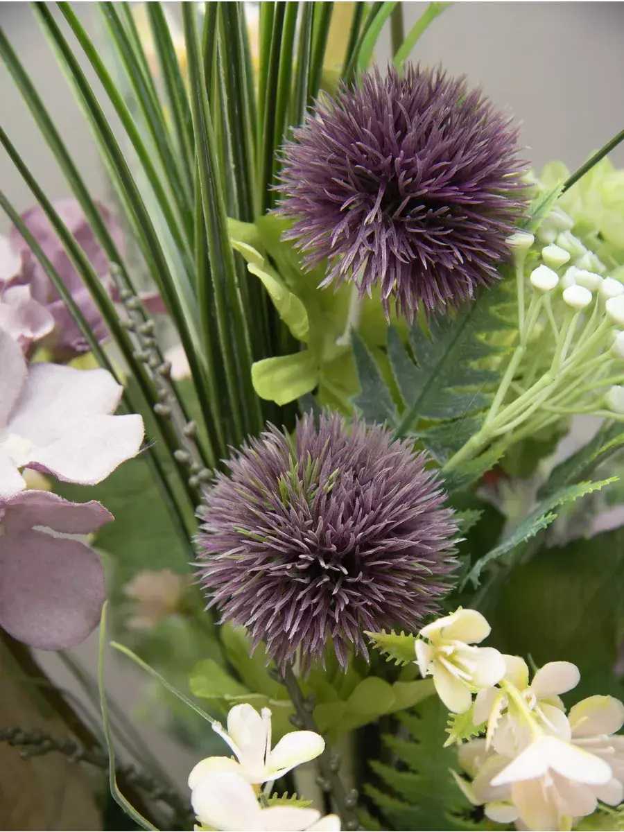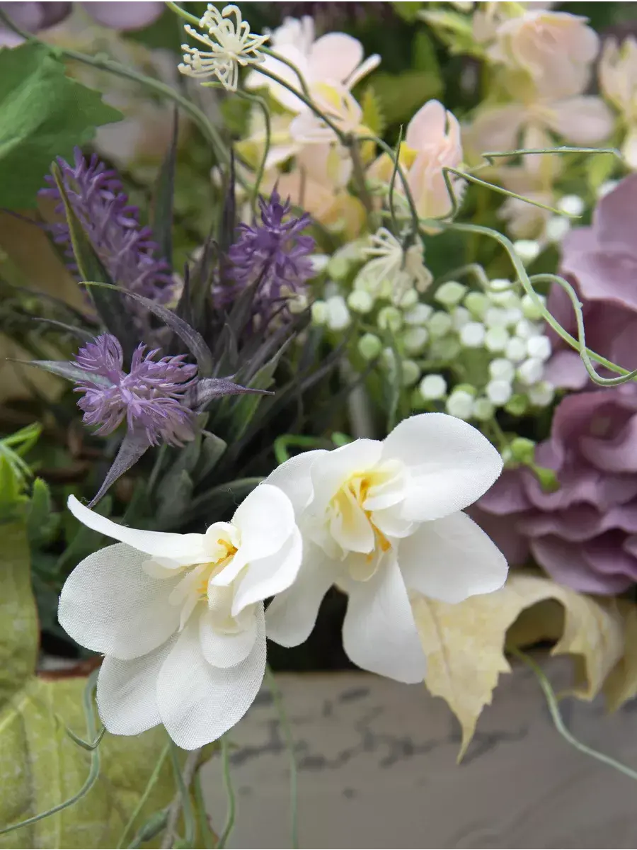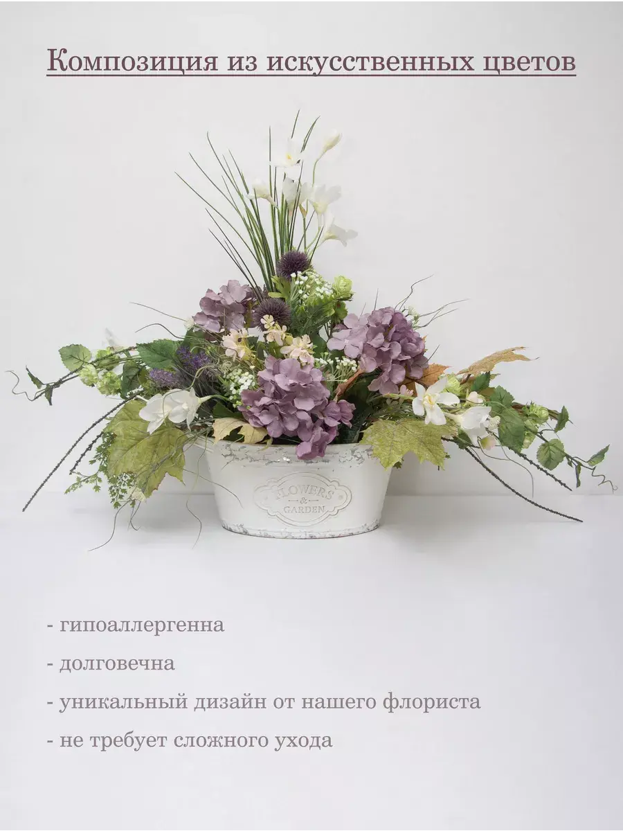 Этот букет из искусственных цветов в кашпо станет великолепным дополнением вашего интерьера, создавая атмосферу уюта и гармонии. Он идеально подходит для тех, кто ценит красоту природы, но не хочет тратить время на уход за живыми растениями. Реалистичные детали каждого цветка делают композицию живой и привлекательной, а пастельные оттенки в стиле прованс добавят нотку нежности в любое помещение. Такой элемент декора прекрасно вписывается в гостиную, спальню или офис, придавая пространству завершённый вид. Искусственные цветы не выцветают и не требуют полива, что позволяет наслаждаться их красотой без лишних хлопот. Выберите этот букет для создания уюта и стиля в вашем доме.