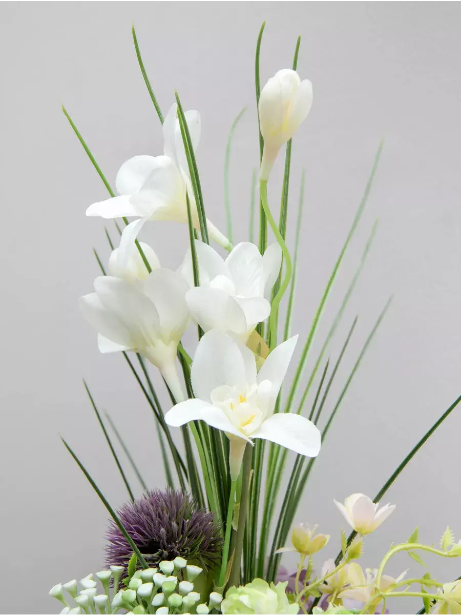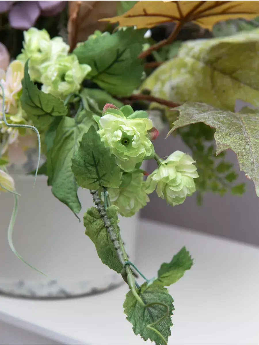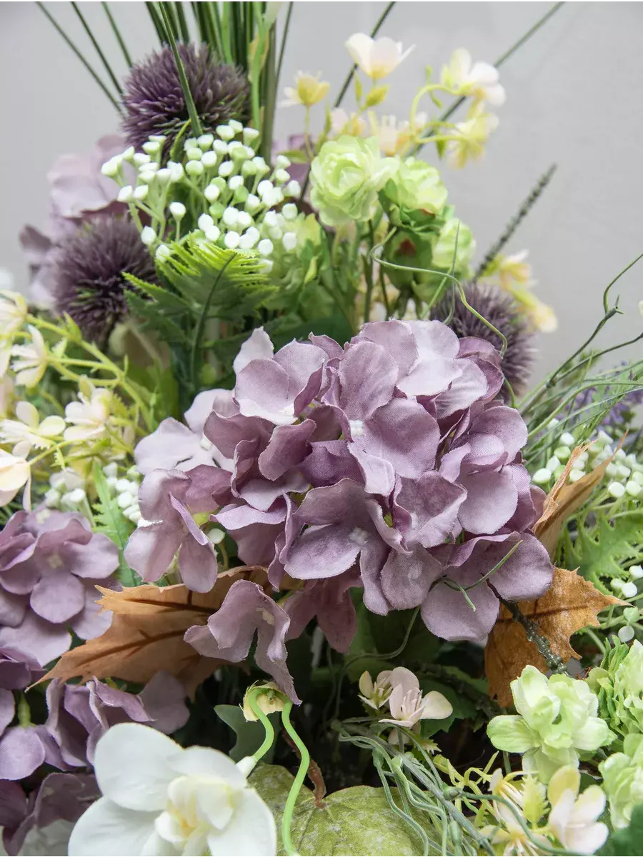 Этот букет из искусственных цветов в кашпо станет великолепным дополнением вашего интерьера, создавая атмосферу уюта и гармонии. Он идеально подходит для тех, кто ценит красоту природы, но не хочет тратить время на уход за живыми растениями. Реалистичные детали каждого цветка делают композицию живой и привлекательной, а пастельные оттенки в стиле прованс добавят нотку нежности в любое помещение. Такой элемент декора прекрасно вписывается в гостиную, спальню или офис, придавая пространству завершённый вид. Искусственные цветы не выцветают и не требуют полива, что позволяет наслаждаться их красотой без лишних хлопот. Выберите этот букет для создания уюта и стиля в вашем доме.