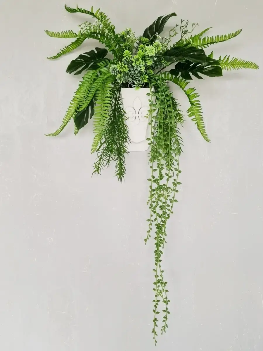 Настенная цветочная композиция в деревянном кашпо с искусственными интерьерными растениями. Выполнена из высококачественных искусственных цветов и ампельных растений , лаванда и гортензия . Размер рамы 25*17 см. В комплекте крепление на стену, шуруп с дюбелем и зубчатый крепеж на кашпо. Отличное украшение к зеркалу, коллекции картин с цветами или в прихожей, где живым цветам недостаточно света. Панно долго будет радовать и добавлять уюта в дом.