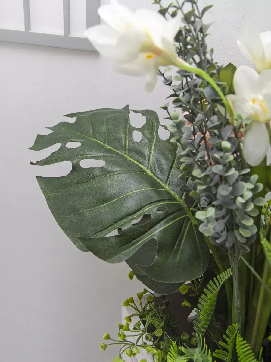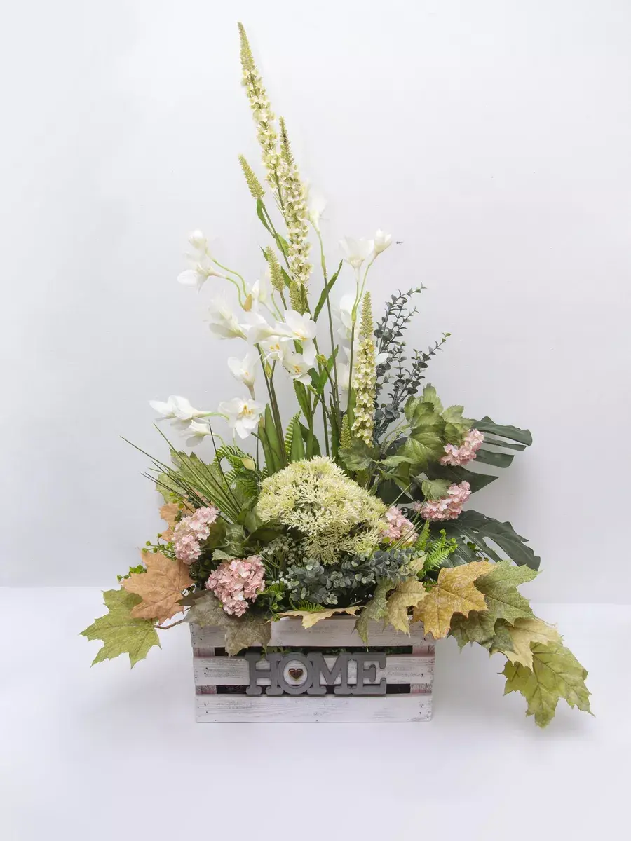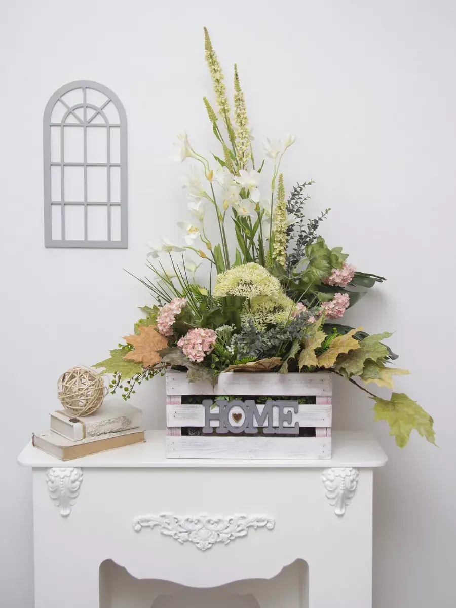 Этот букет из искусственных цветов в кашпо станет великолепным дополнением вашего интерьера, создавая атмосферу уюта и гармонии. Он идеально подходит для тех, кто ценит красоту природы, но не хочет тратить время на уход за живыми растениями. Реалистичные детали каждого цветка делают композицию живой и привлекательной, а пастельные оттенки в стиле прованс добавят нотку нежности в любое помещение. Такой элемент декора прекрасно вписывается в гостиную, спальню или офис, придавая пространству завершённый вид. Искусственные цветы не выцветают и не требуют полива, что позволяет наслаждаться их красотой без лишних хлопот. Выберите этот букет для создания уюта и стиля в вашем доме.