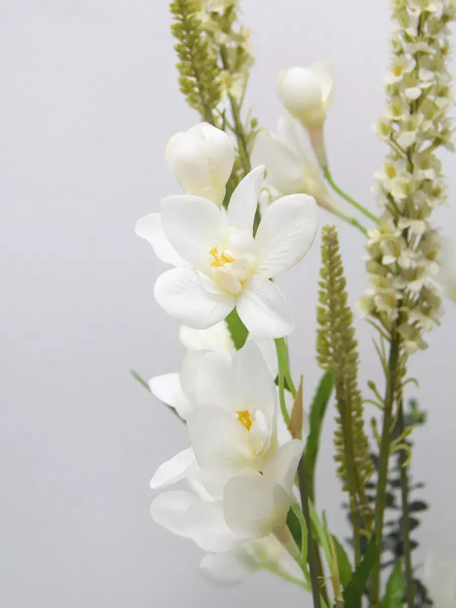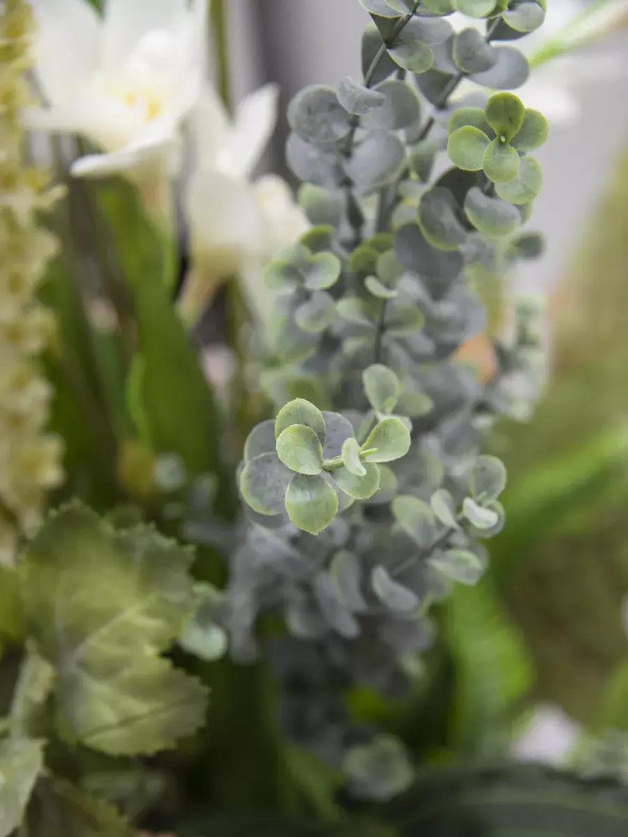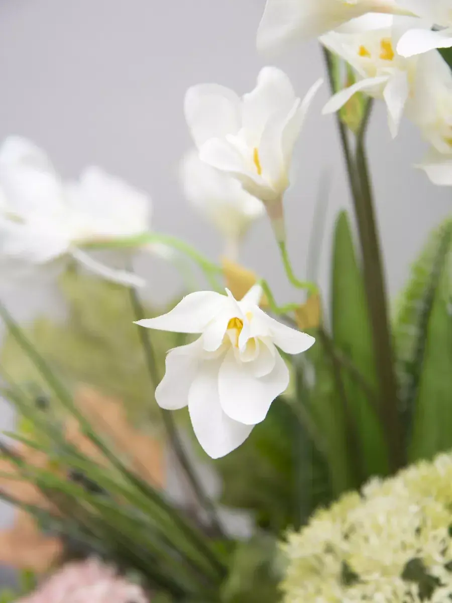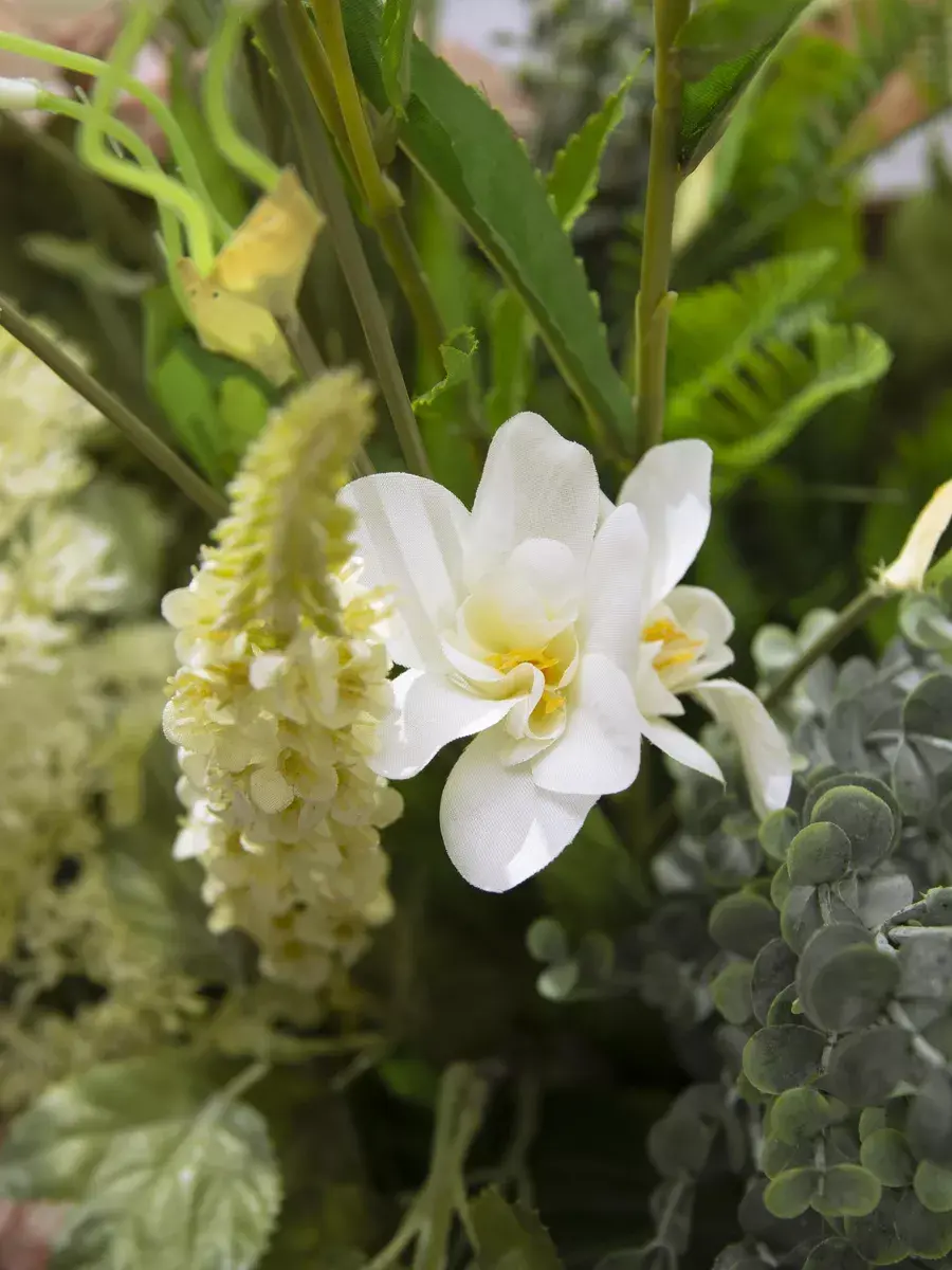 Этот букет из искусственных цветов в кашпо станет великолепным дополнением вашего интерьера, создавая атмосферу уюта и гармонии. Он идеально подходит для тех, кто ценит красоту природы, но не хочет тратить время на уход за живыми растениями. Реалистичные детали каждого цветка делают композицию живой и привлекательной, а пастельные оттенки в стиле прованс добавят нотку нежности в любое помещение. Такой элемент декора прекрасно вписывается в гостиную, спальню или офис, придавая пространству завершённый вид. Искусственные цветы не выцветают и не требуют полива, что позволяет наслаждаться их красотой без лишних хлопот. Выберите этот букет для создания уюта и стиля в вашем доме.