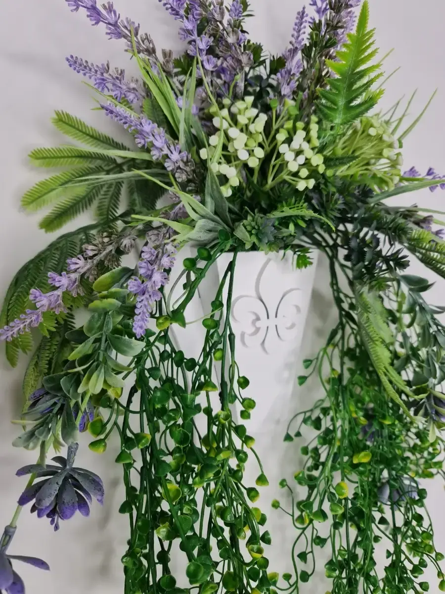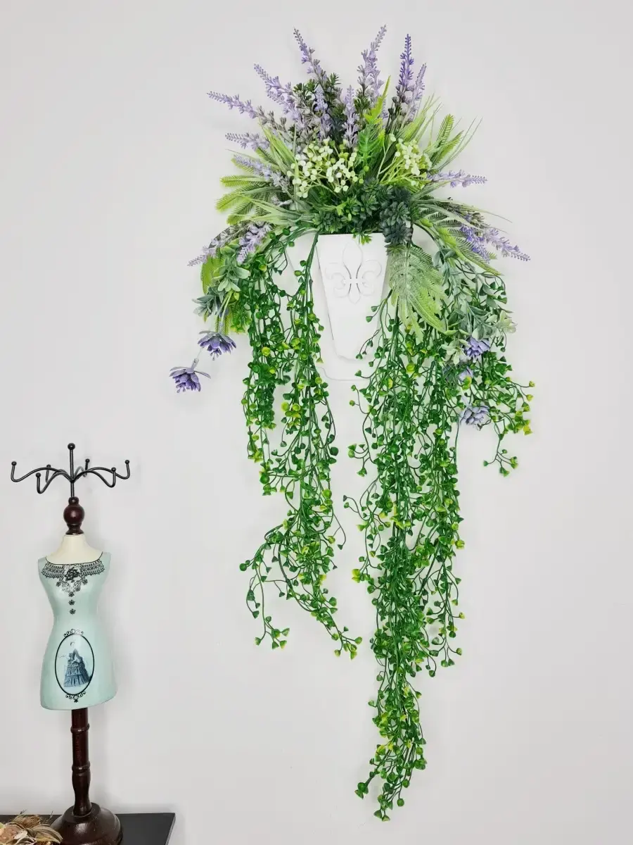 Настенная цветочная композиция в деревянном кашпо с искусственными интерьерными растениями. Выполнена из высококачественных искусственных цветов и ампельных растений , лаванда и гортензия . Размер рамы 25*17 см. В комплекте крепление на стену, шуруп с дюбелем и зубчатый крепеж на кашпо. Отличное украшение к зеркалу, коллекции картин с цветами или в прихожей, где живым цветам недостаточно света. Панно долго будет радовать и добавлять уюта в дом.