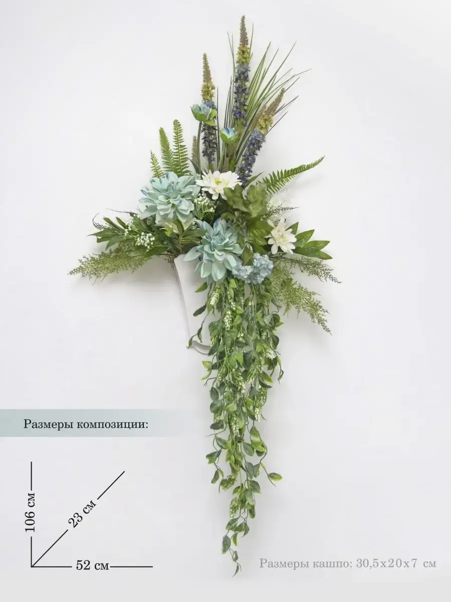 Авторская настенная цветочная композиция в деревянном кашпо. Выполнена из высококачественных материалов, искусственных цветов и растений. Добавит весеннего настроения в любой интерьер. Станет прекрасным украшением вашего дома. Размер композиции указан на фото. Размер кашпо 30,5*20 см.