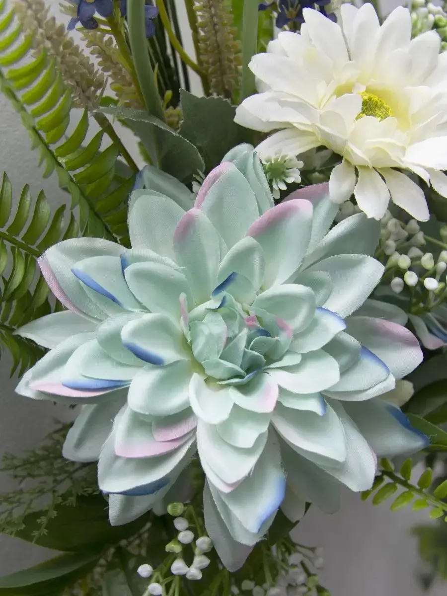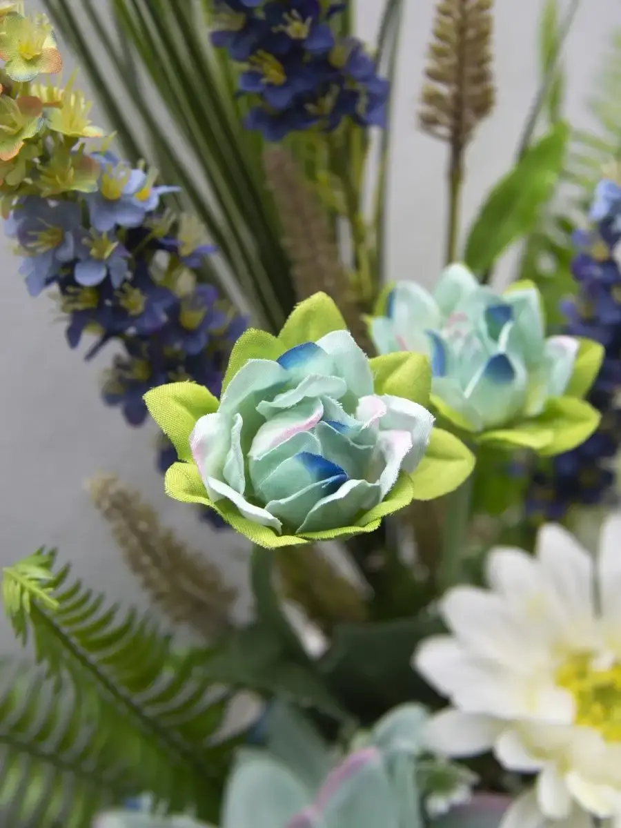 Этот букет из искусственных цветов в кашпо станет великолепным дополнением вашего интерьера, создавая атмосферу уюта и гармонии. Он идеально подходит для тех, кто ценит красоту природы, но не хочет тратить время на уход за живыми растениями. Реалистичные детали каждого цветка делают композицию живой и привлекательной, а пастельные оттенки добавят нотку нежности в любое помещение. Такой элемент декора прекрасно вписывается в гостиную, спальню или офис, придавая пространству завершённый вид. Искусственные цветы не выцветают и не требуют полива, что позволяет наслаждаться их красотой без лишних хлопот. Выберите этот букет для создания уюта и стиля в вашем доме.