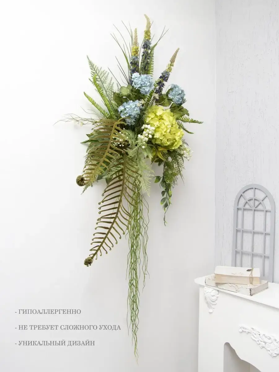 Авторская настенная цветочная композиция в деревянном кашпо. Выполнена из высококачественных материалов, искусственных цветов и растений. Добавит весеннего настроения в любой интерьер. Станет прекрасным украшением вашего дома. Размер композиции указан на фото. Размер кашпо 30,5*20 см.