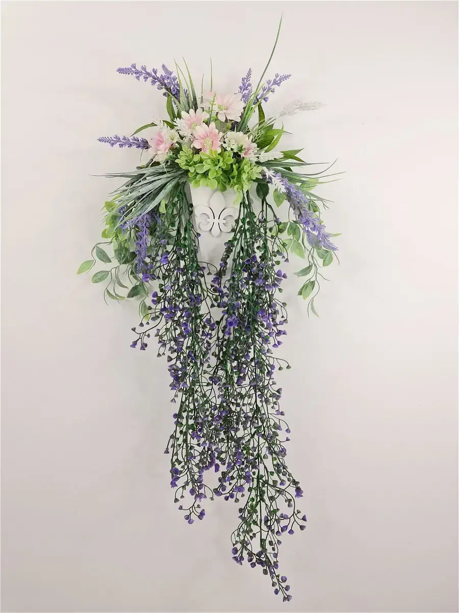 Настенная цветочная композиция в деревянном кашпо с искусственными интерьерными растениями. Выполнена из высококачественных искусственных цветов и ампельных растений , лаванда и гортензия . Размер рамы 25*17 см. В комплекте крепление на стену, шуруп с дюбелем и зубчатый крепеж на кашпо. Отличное украшение к зеркалу, коллекции картин с цветами или в прихожей, где живым цветам недостаточно света. Панно долго будет радовать и добавлять уюта в дом.
