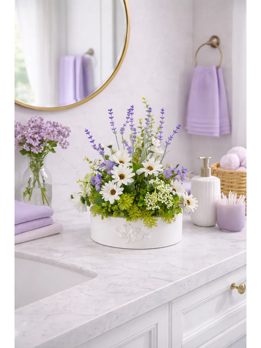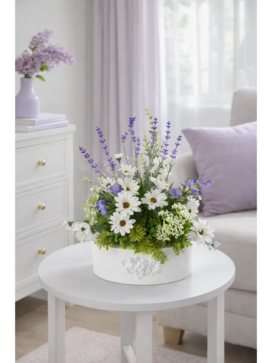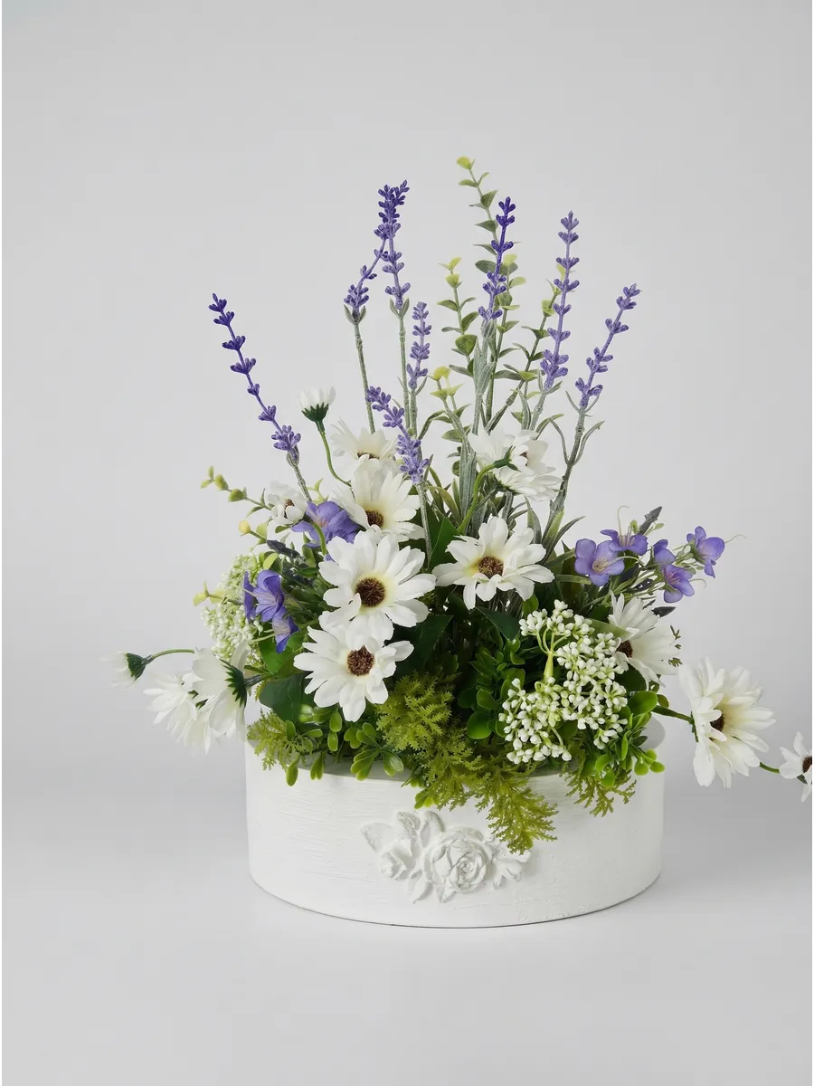 Цветочная композиция "Ромашки с лавандой" от Elenadecor - это стильное и качественное украшение, которое добавит уютную атмосферу в любую комнату. Благодаря реалистичности искусственных растений, эта композиция выглядят как настоящие, но при этом не требуют особого ухода. Нежные цветы в стильном кашпо из дерева станут отличным дополнением к любому интерьеру, будь то гостиная, офис или спальня. Декоративные растения впишутся в любой дизайн, создавая акценты и украшая пространство. Композиция "Ромашки с лавандой" идеально подойдет для тех, кто хочет добавить зелень в свой дом, не заботясь о поливе и уходе. Благодаря своим возможностям, эти украшения с легкостью преобразят вашу комнату, создавая уютную и стильную атмосферу.