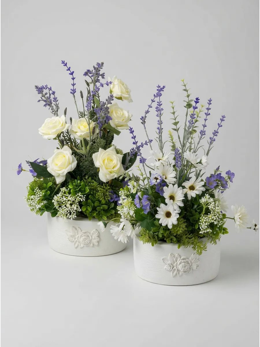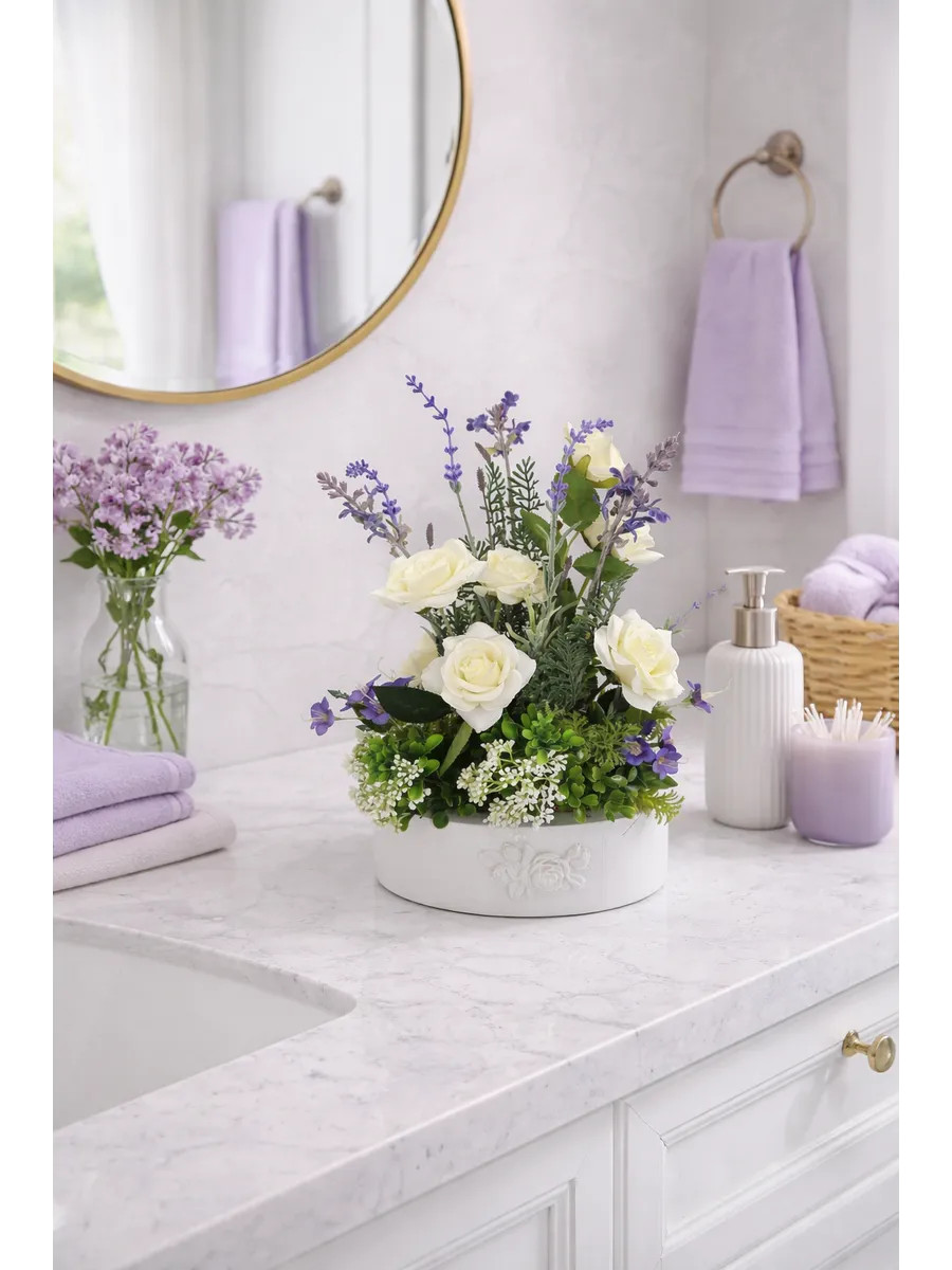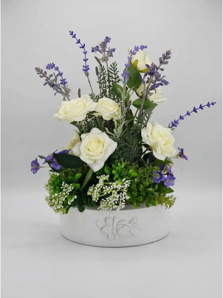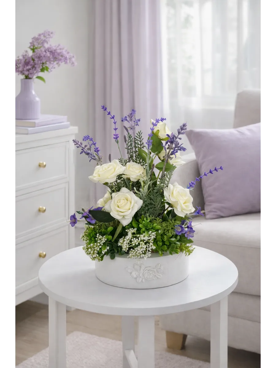 Цветочная композиция "Розочки с лавандой" от Elenadecor - это стильное и качественное украшение, которое добавит уютную атмосферу в любую комнату. Благодаря реалистичности искусственных растений, эта композиция выглядят как настоящие, но при этом не требуют особого ухода. Нежные цветы в стильном кашпо из дерева станут отличным дополнением к любому интерьеру, будь то гостиная, офис или спальня. Декоративные растения впишутся в любой дизайн, создавая акценты и украшая пространство. Композиция "Розочки с лавандой" идеально подойдет для тех, кто хочет добавить зелень в свой дом, не заботясь о поливе и уходе. Благодаря своим возможностям, эти украшения с легкостью преобразят вашу комнату, создавая уютную и стильную атмосферу.