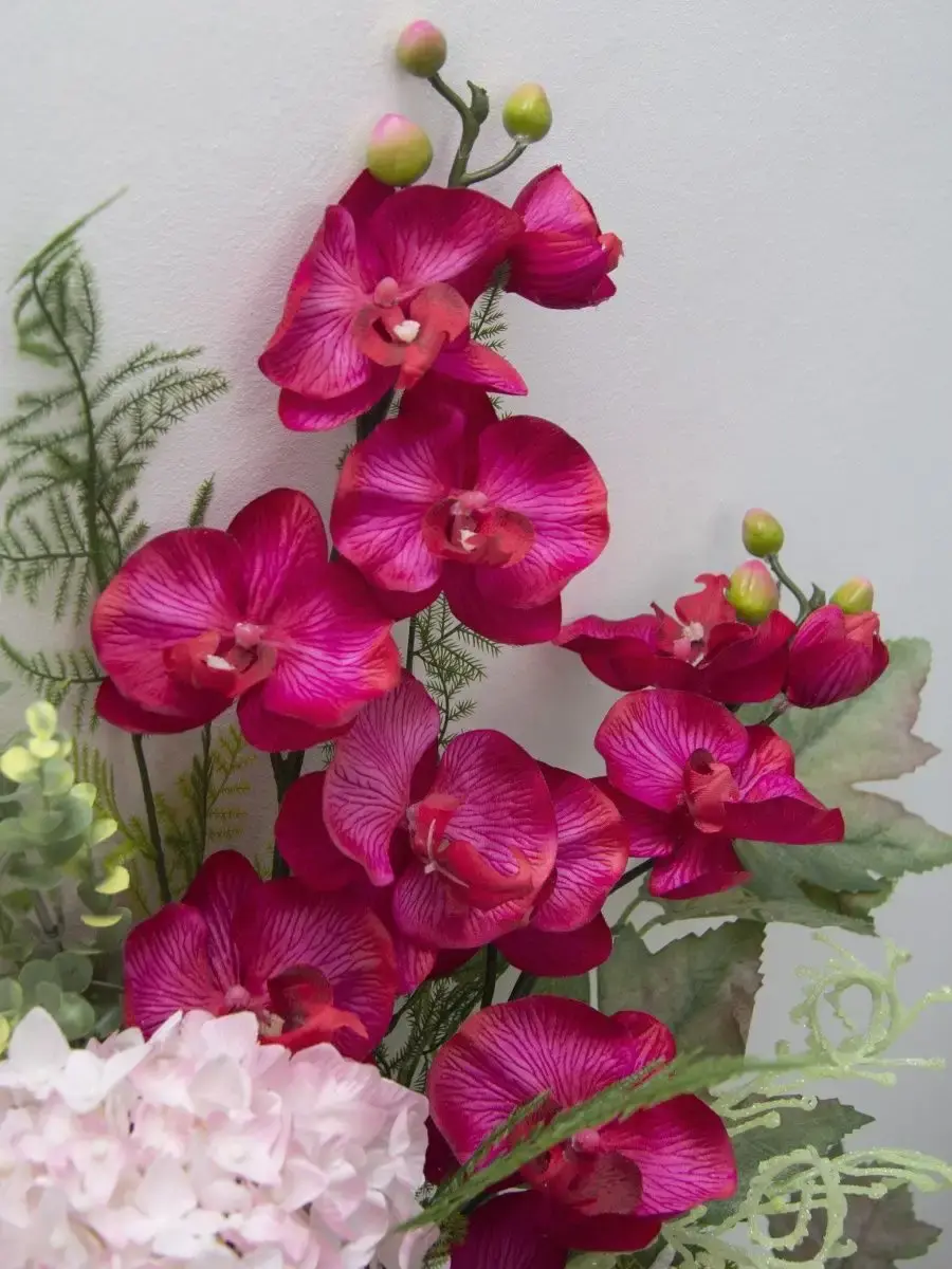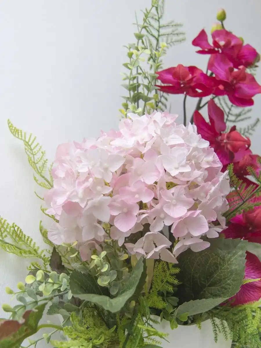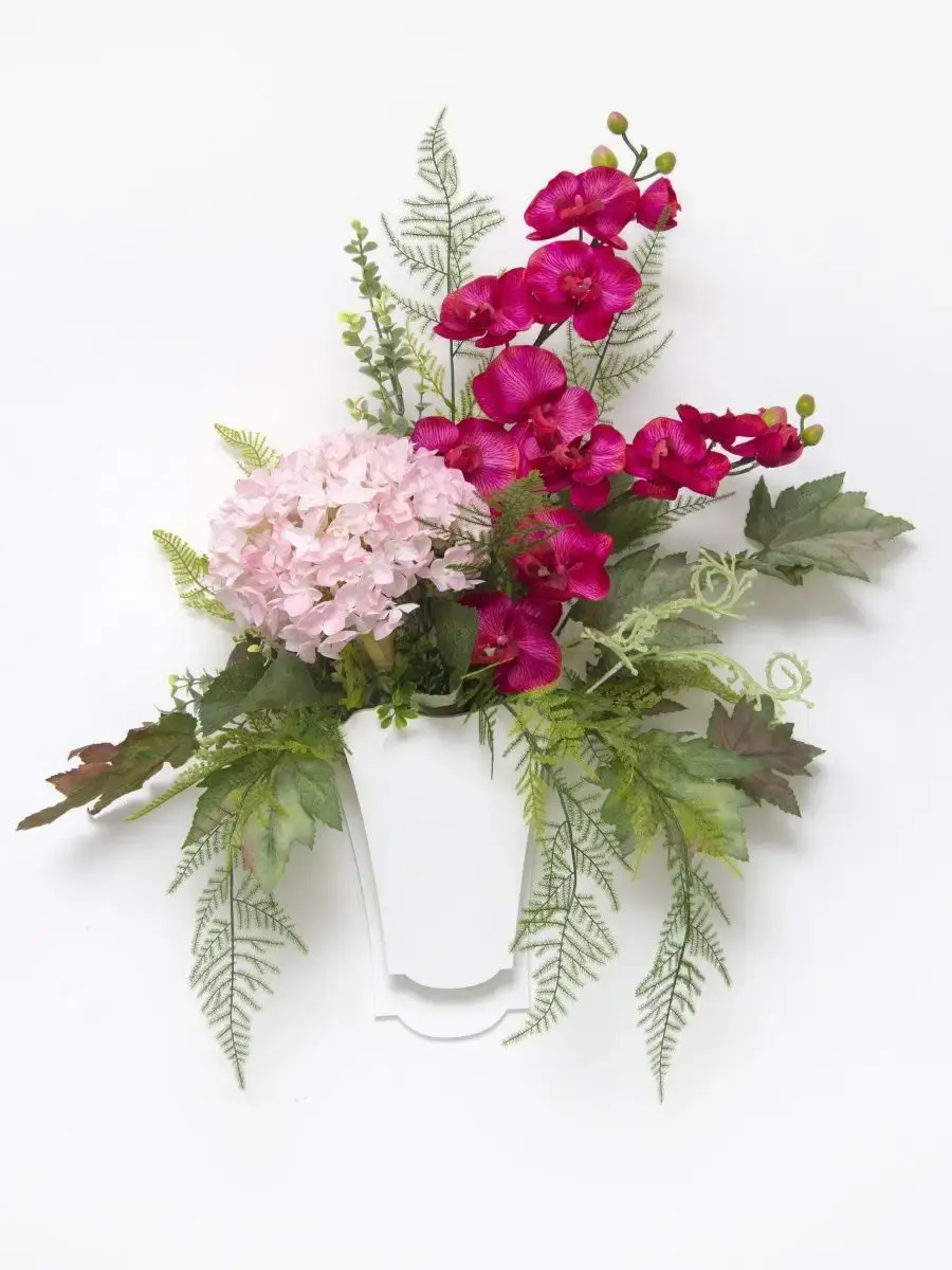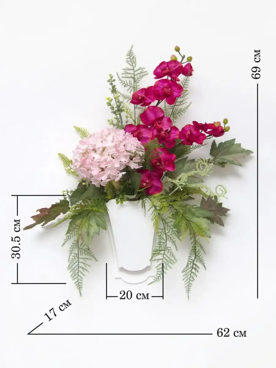 Этот букет из искусственных цветов в кашпо станет великолепным дополнением вашего интерьера, создавая атмосферу уюта и гармонии. Он идеально подходит для тех, кто ценит красоту природы, но не хочет тратить время на уход за живыми растениями. Реалистичные детали каждого цветка делают композицию живой и привлекательной, а пастельные оттенки добавят нотку нежности в любое помещение. Такой элемент декора прекрасно вписывается в гостиную, спальню или офис, придавая пространству завершённый вид. Искусственные цветы не выцветают и не требуют полива, что позволяет наслаждаться их красотой без лишних хлопот. Выберите этот букет для создания уюта и стиля в вашем доме.