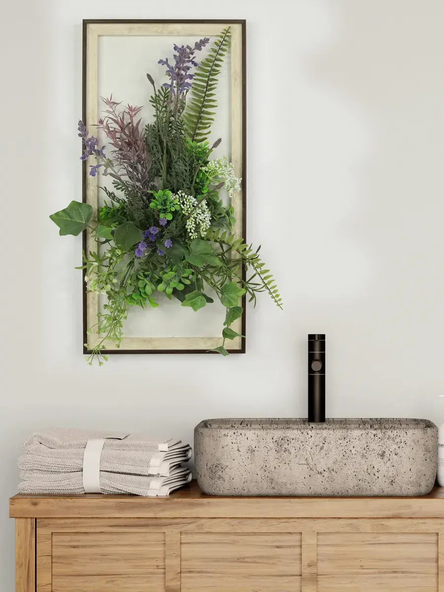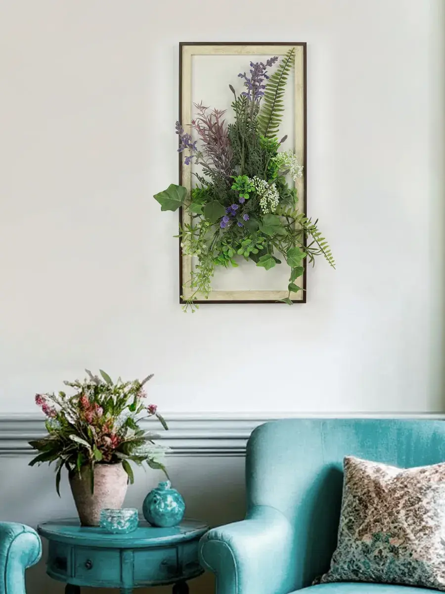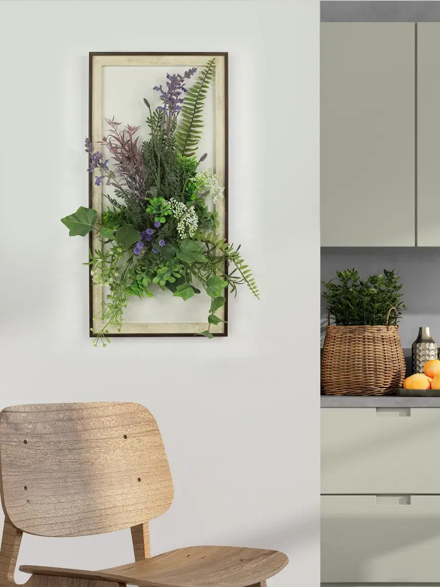 Настенное панно с искусственными цветами станет ярким акцентом в вашем интерьере. Эта композиция в раме оформлена стильными цветами, которые гармонично дополняют композицию, создавая атмосферу уюта и нежности. Подходит для украшения гостиной или спальни, придавая пространству особый шарм. Длинные лианы эффектно свисают, добавляя динамичности, а яркие растения словно оживляют стену. Настенное украшение станет не только красивым элементом декора, но и практичным решением для тех, кто хочет избежать забот о живых растениях. Панно легко монтируется на стену, что позволяет быстро изменить обстановку в комнате. Оно отлично впишется в любые стили интерьера, от классического до современного, придавая пространству дома завершённый вид. Это изделие не только радует глаз, но и создает теплую атмосферу в вашем доме.