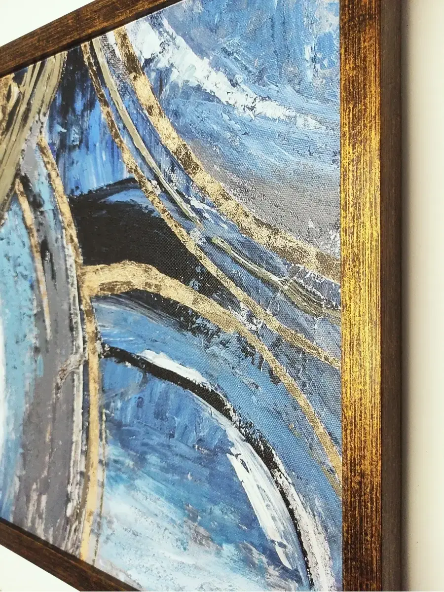 Абстрактная картина в современном стиле в глубокой раме. Печать в высоком разрешении, яркие цвета. Натуральный холст наклеен на хдф и покрыт матовым лаком для защиты от провисания и выцветания. В оформлении можно использовать несколько одинаковых картин, рисунок расположен так, что они будут дополнять друг друга, создавая одну большую картину.Размер картины в раме 43х57 см.