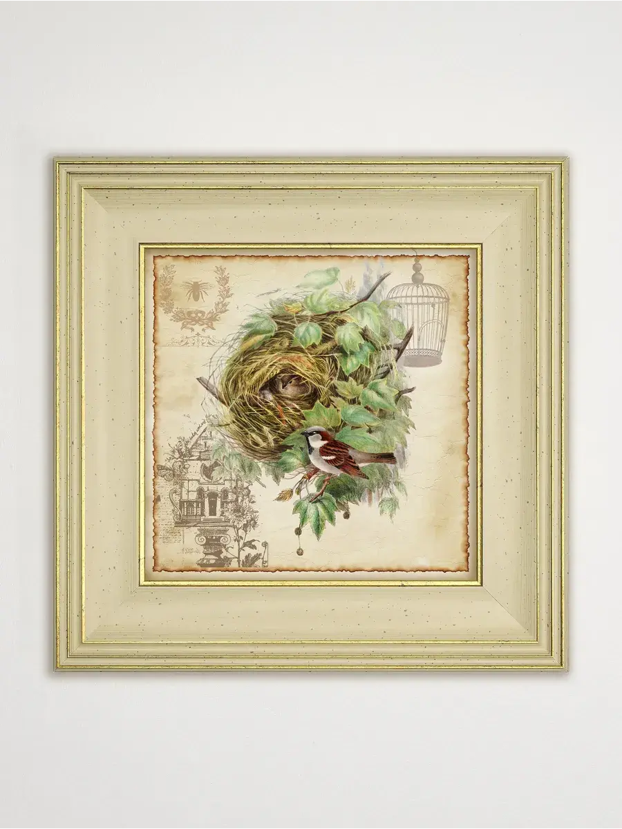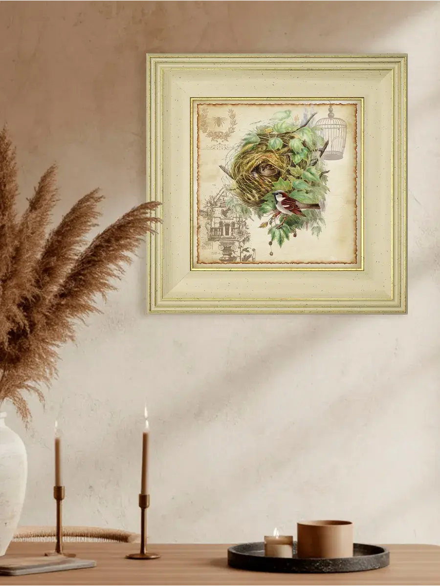 Серия картин "Птички" - это удивительно красивая серия в широком классическом багете, которая добавит уют и спокойствие в ваш дом. Эта интерьерная репродукция, выполненная в технике цифровой печати на хлопковом холсте, станет изящным украшением любой комнаты. Картина размером 30x30 см, напечатана на натуральном холсте и оформлена в раму, что делает ее готовой к размещению на стене. Благодаря удобному креплению, установка картины не займет много времени. Теплые бежевые, оранжевые и золотистые тона рисунка с изображением птиц создадут в вашем доме атмосферу уюта и комфорта, а сама картина станет прекрасным дополнением к вашей домашней коллекции. Картина "Птички" станет прекрасным подарком для любимых бабушек, мам и сестер на день рождения, день матери или новоселье.