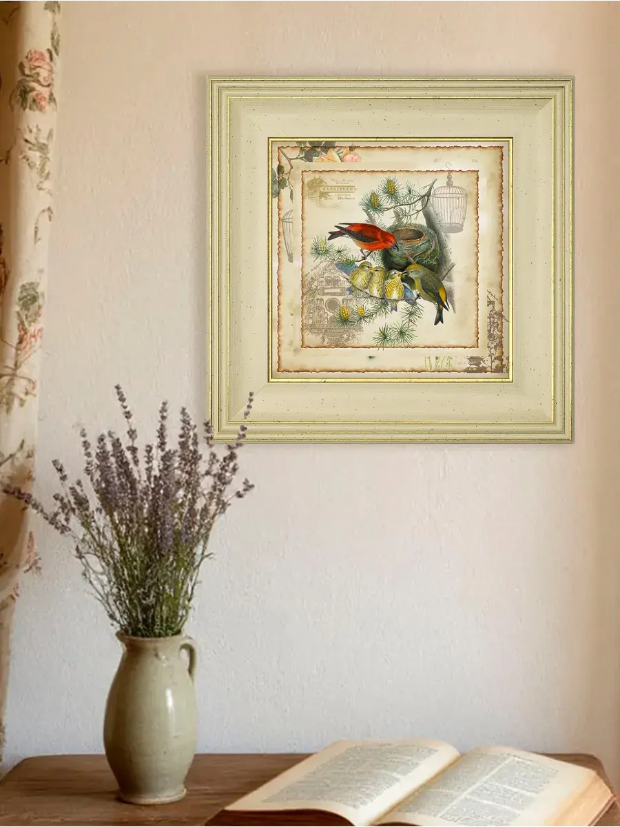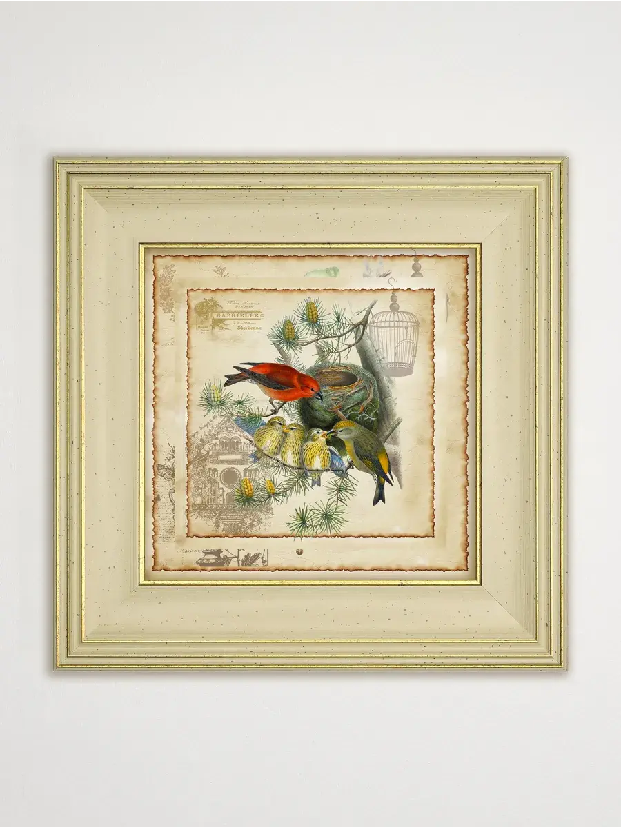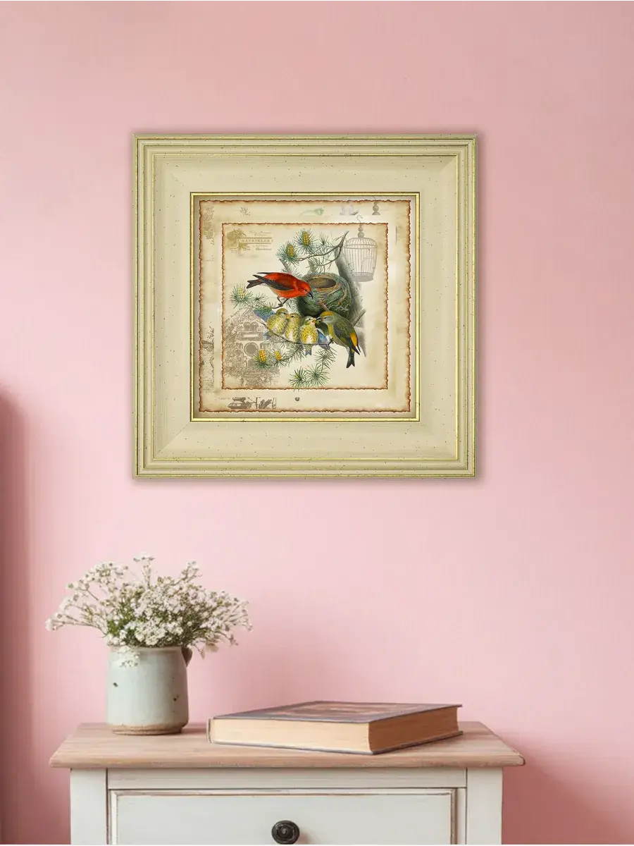 Серия картин "Птички" - это удивительно красивая серия в широком классическом багете, которая добавит уют и спокойствие в ваш дом. Эта интерьерная репродукция, выполненная в технике цифровой печати на хлопковом холсте, станет изящным украшением любой комнаты. Картина размером 30x30 см, напечатана на натуральном холсте и оформлена в раму, что делает ее готовой к размещению на стене. Благодаря удобному креплению, установка картины не займет много времени. Теплые бежевые, оранжевые и золотистые тона рисунка с изображением птиц создадут в вашем доме атмосферу уюта и комфорта, а сама картина станет прекрасным дополнением к вашей домашней коллекции. Картина "Птички" станет прекрасным подарком для любимых бабушек, мам и сестер на день рождения, день матери или новоселье.
