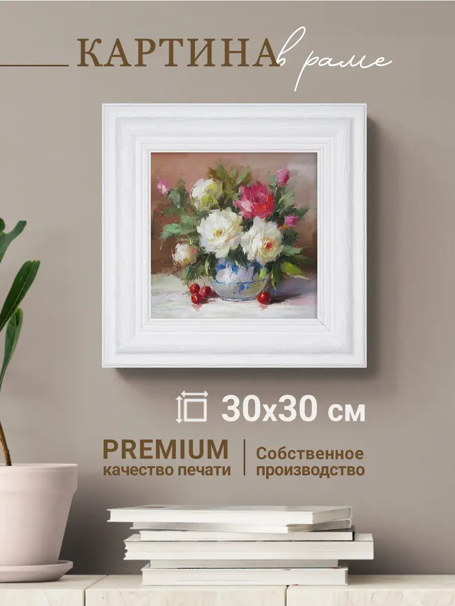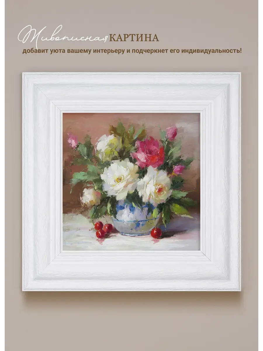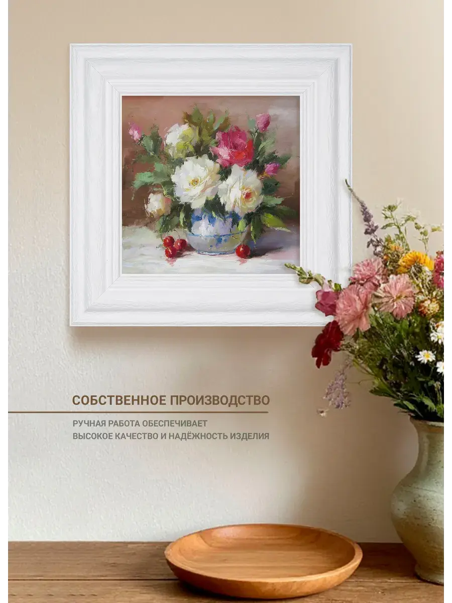Картина "Любимый букет" от Elenadecor – это прекрасный способ добавить нотку умиротворения и релакса в любой интерьер. Эта интерьерная репродукция, выполненная в технике цифровой печати, порадует вас высоким качеством печати и реалистичной структурой холста из хлопка. Классический багет подчеркивает красоту изображения, на котором изображены любимые цветы в нежных тонах. Картина размером 30х30 см уже вставлена в раму и готова к установке, а прилагаемый крепеж обеспечит удобство монтажа. "Любимый букет" станет прекрасным подарком для мамы, бабушки или сестры на день рождения, новоселье или Новый год, наполняя их дом атмосферой спокойствия и уюта.