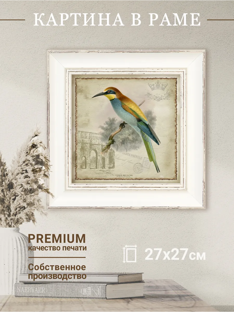 Картина в раме 27х27 см с птицами — стильный декор для интерьера