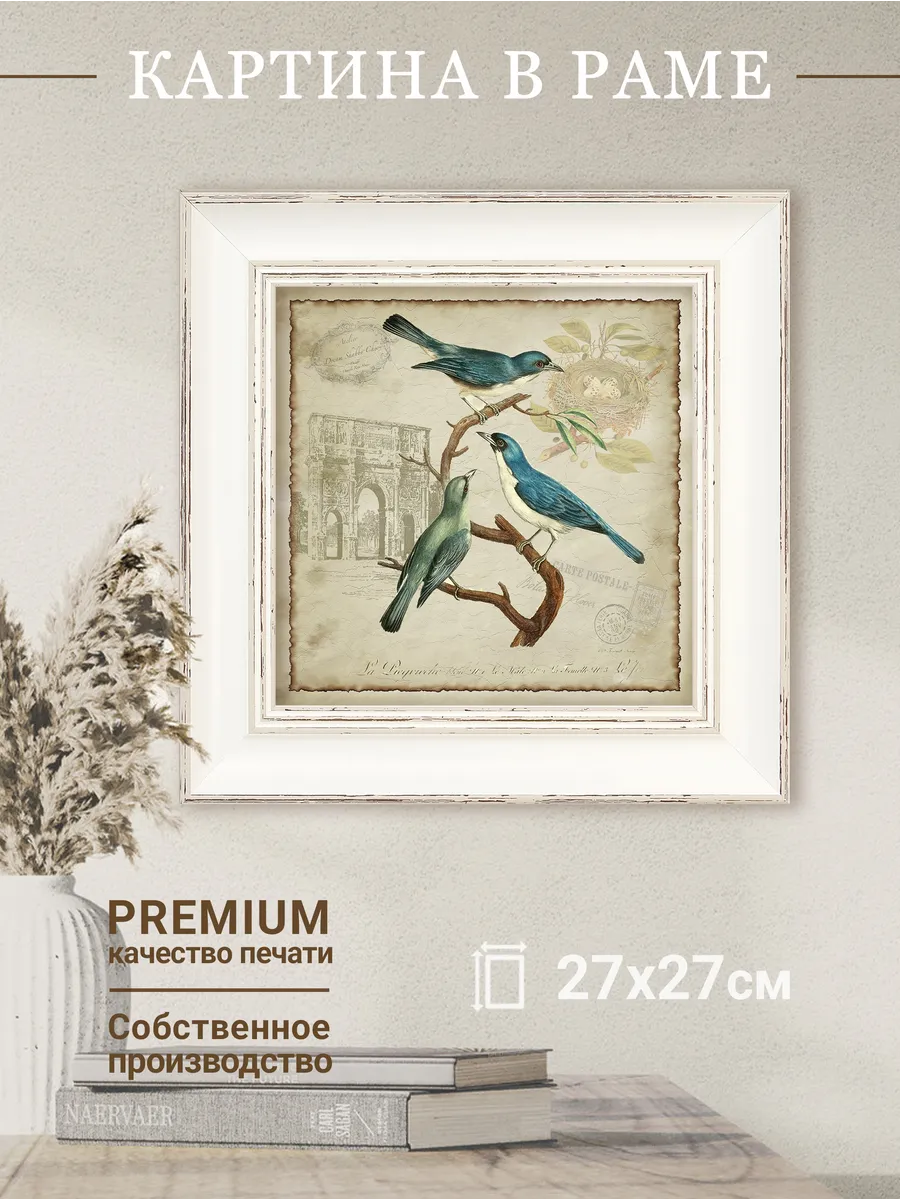 Картина в раме 27х27 см с птицами — стильный декор для интерьера