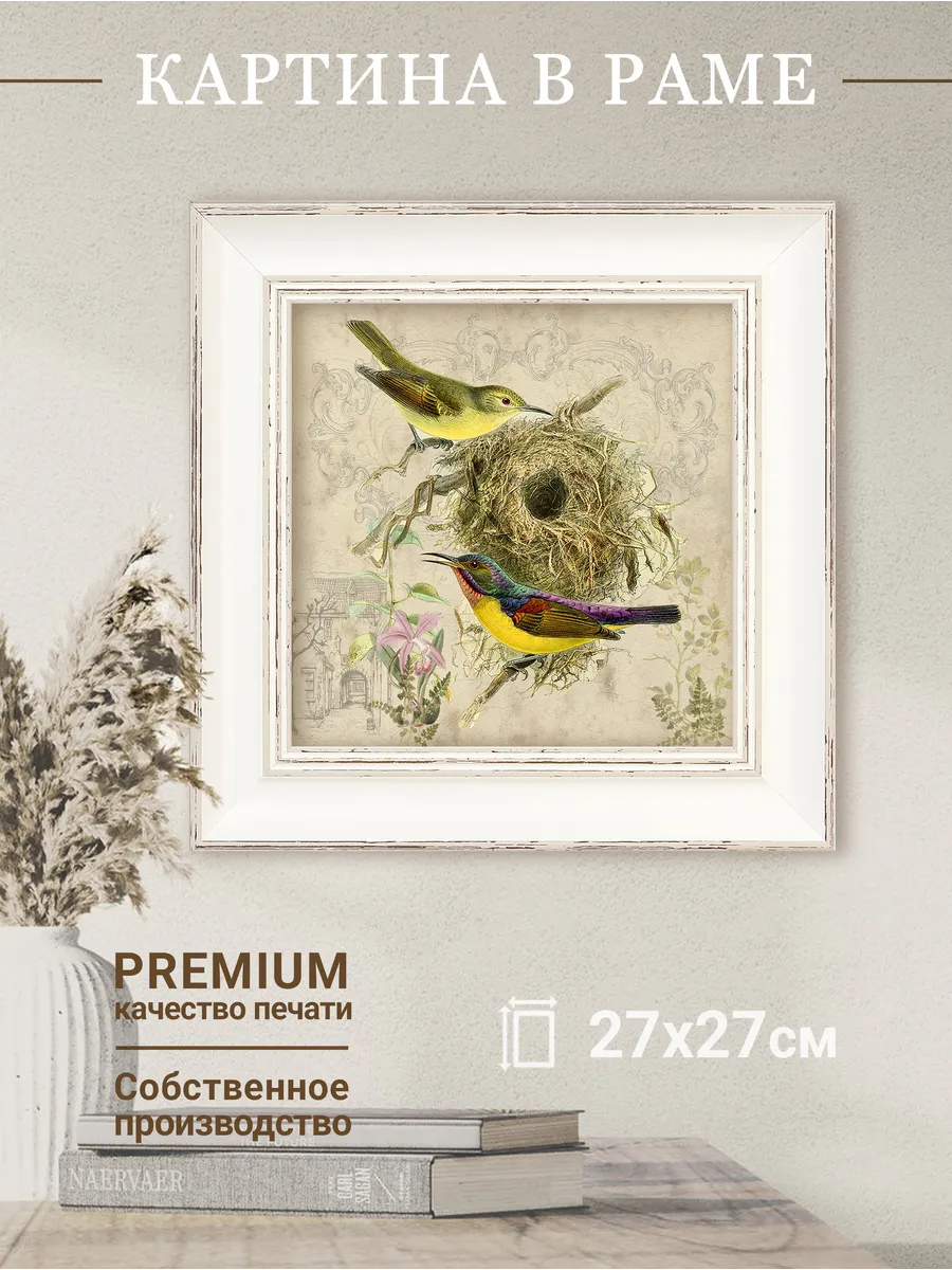 Картина в раме 27х27 см с птицами — стильный декор для интерьера