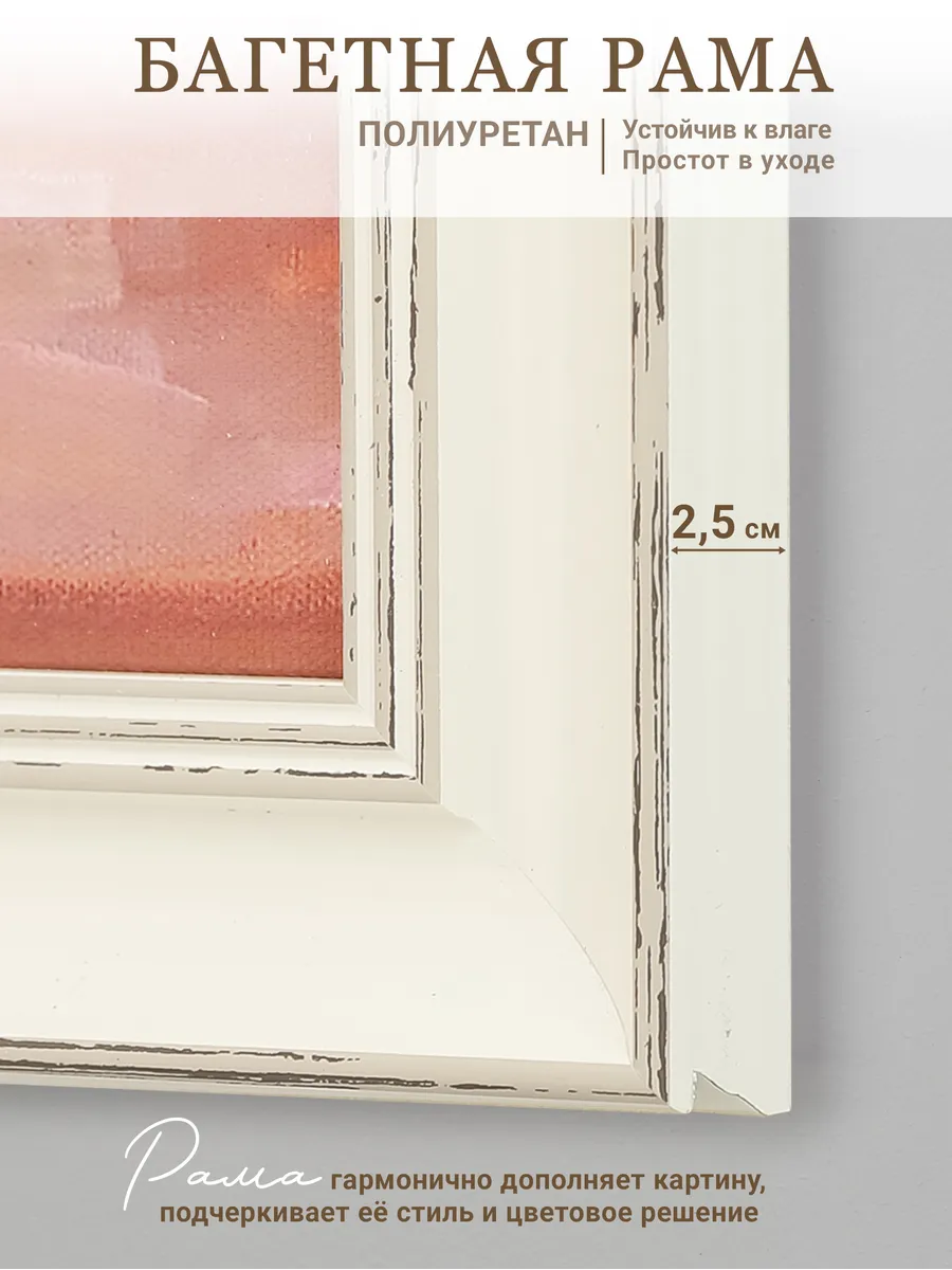 Спокойная природная гамма, винтажный сюжет и светлая рама делают картину универсальной для классического, скандинавского, прованс, кантри и современного интерьера. Она визуально вытягивает пространство и добавляет интерьеру лёгкости и уюта.